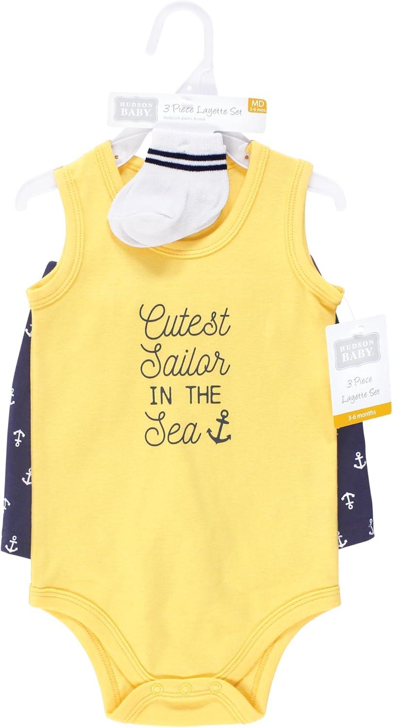 Hudson Baby Unisex Baby Bodysuit, Short and Sock, 3-Piece Set(Cutest Sailor)