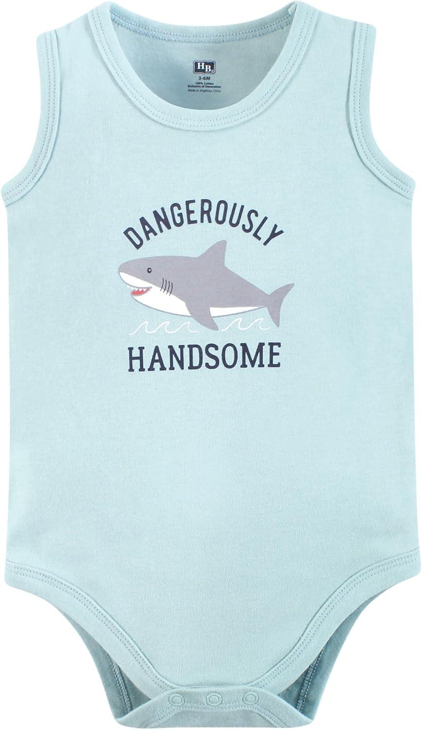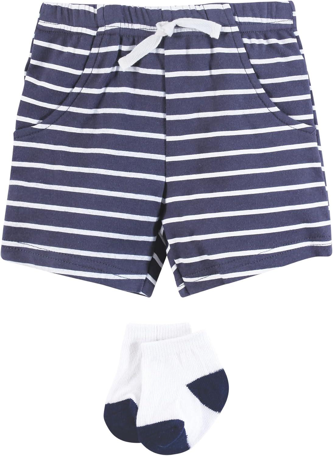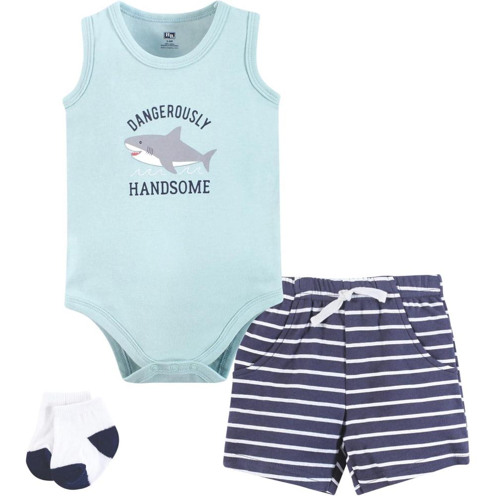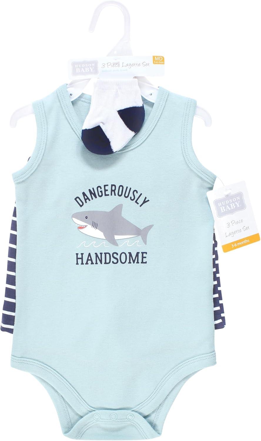 Hudson Baby Unisex Baby Bodysuit, Short and Sock, 3-Piece Set(Handsome Shark)