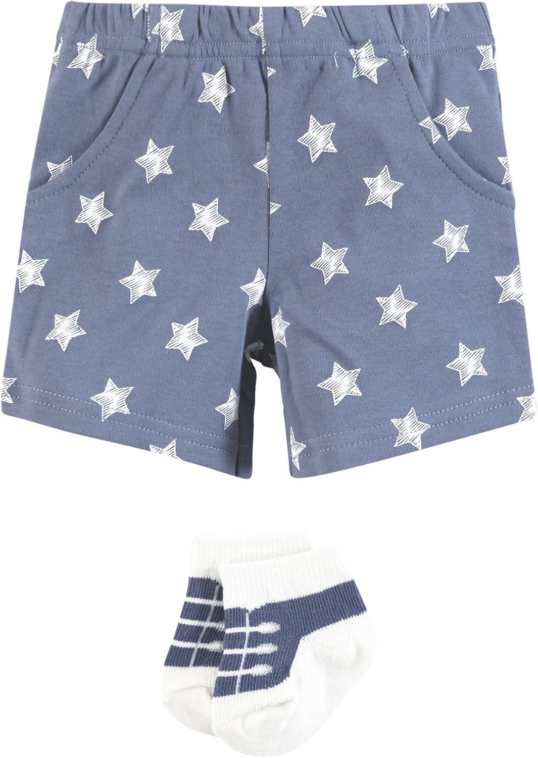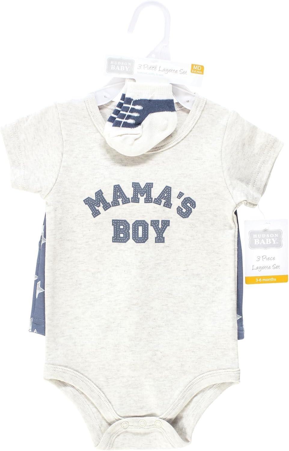 Hudson Baby Unisex Baby Bodysuit, Short and Sock, 3-Piece Set(Mamas Boy Blue Star)