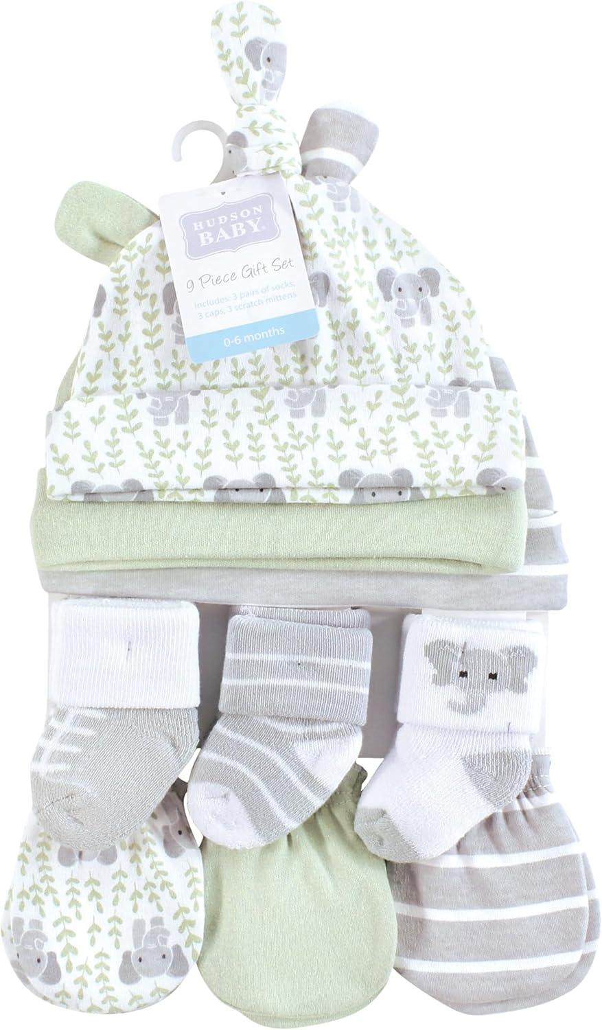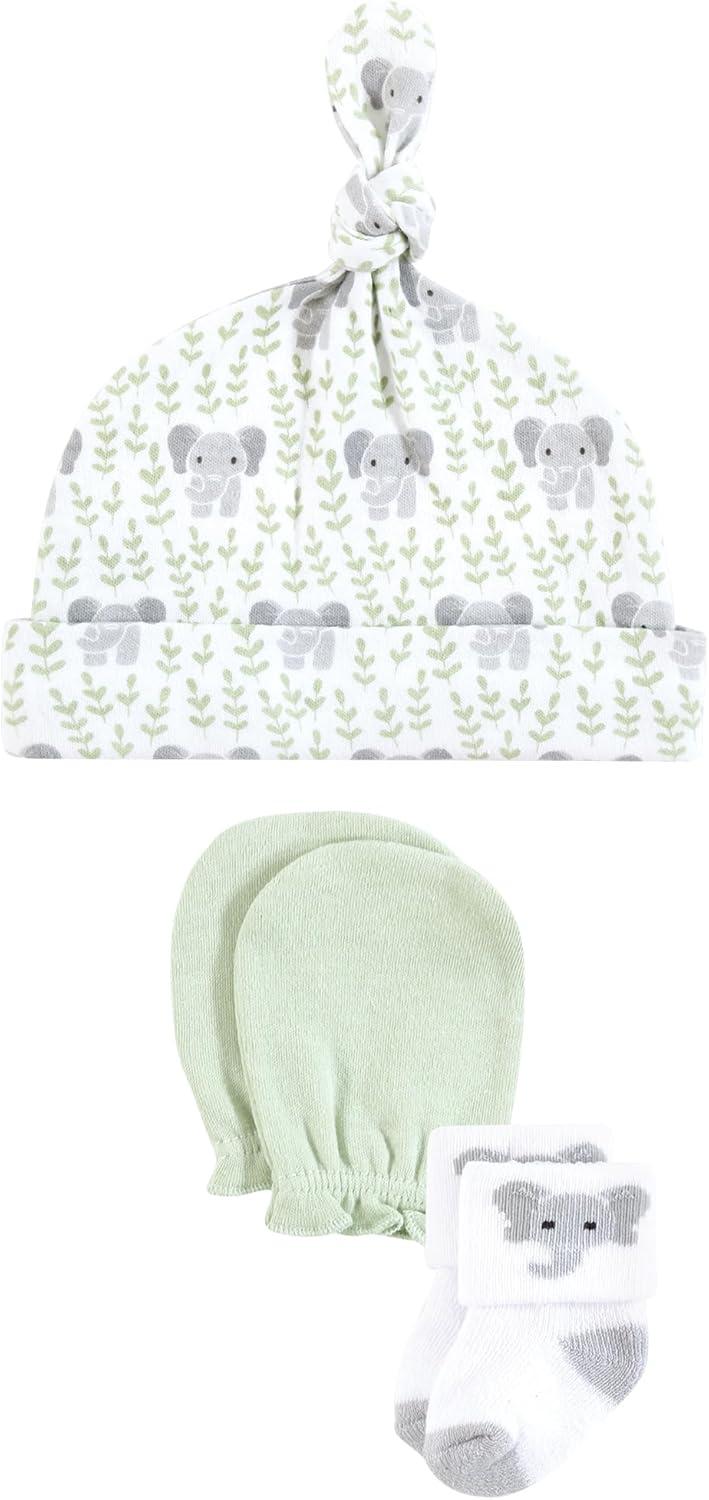 Hudson Baby Unisex Baby Caps, Mittens and Socks Set, 0-6 Months(Leafy Elephant)