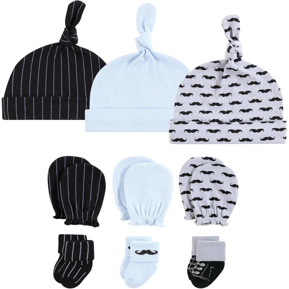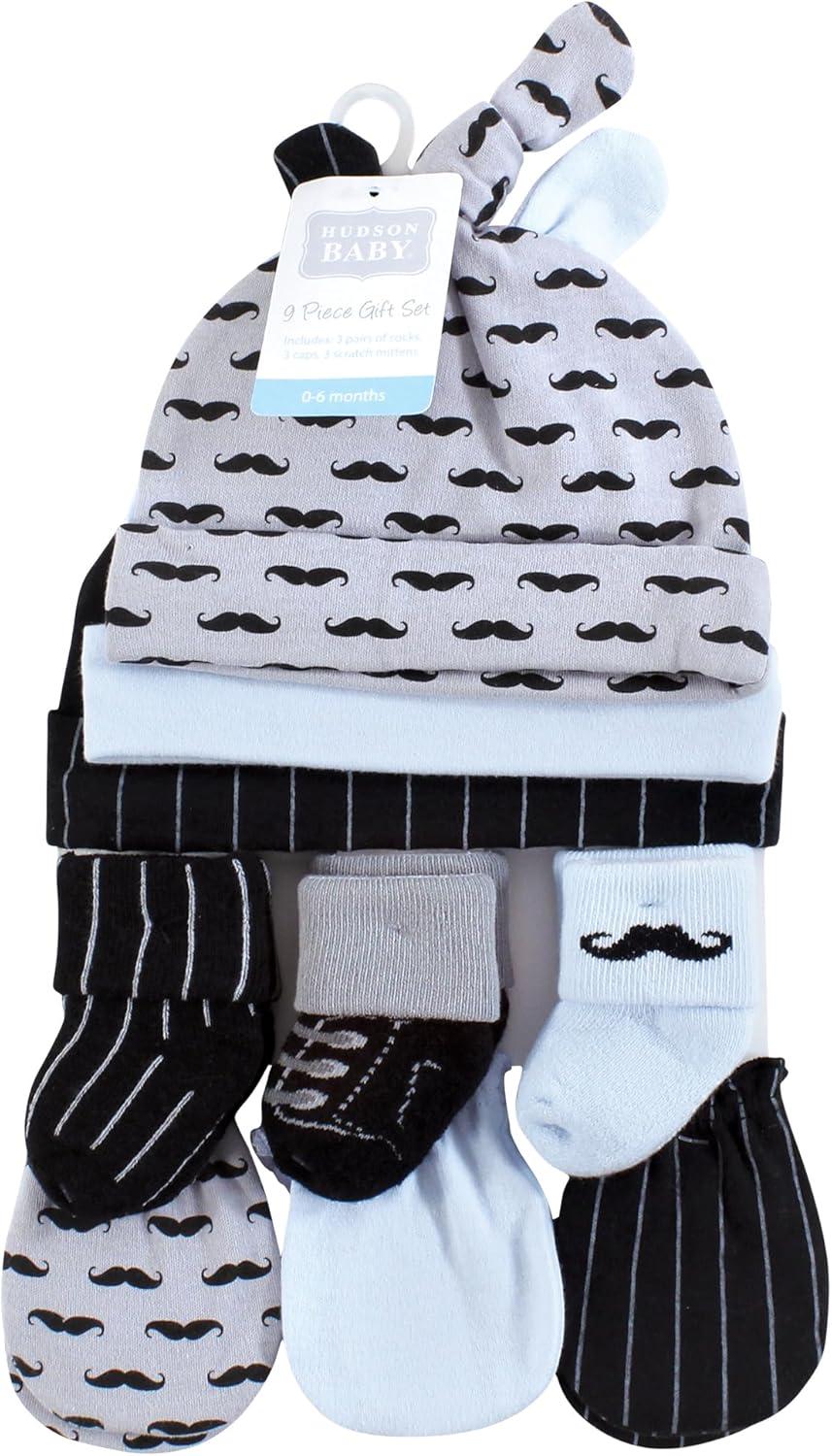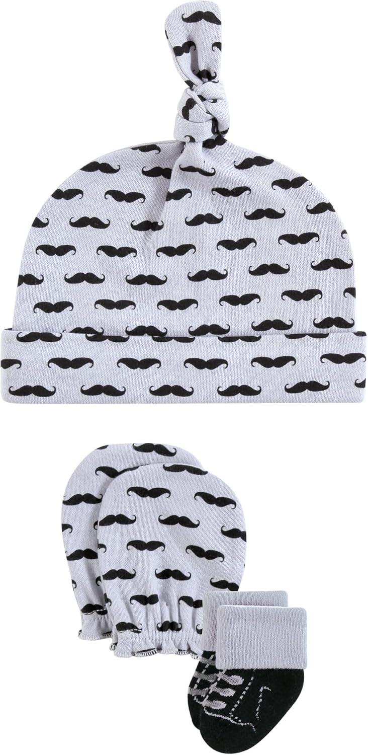 Hudson Baby Unisex Baby Caps, Mittens and Socks Set, 0-6 Months(Little Mustache)