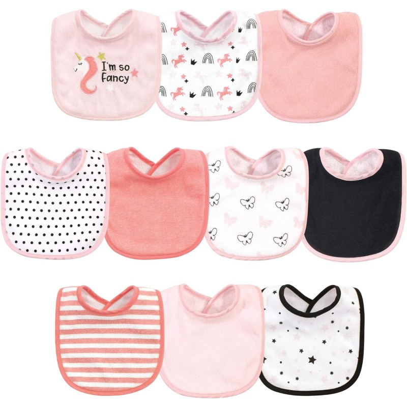 Hudson Baby drooler bibs are a great set of value bibs that absorb your baby's drools and spills. Our bibs feature fun colors of everyday essential bibs that are soft, large and absorbent. Protect his or her adorable outfits from mishaps with our bibs.