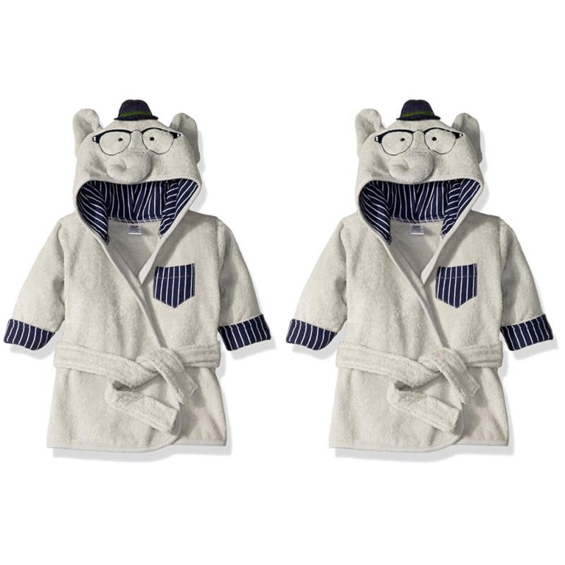 Hudson Baby Unisex Baby Cotton Animal Face Bathrobe, Smart Elephant, One Size (Pack of 2)(Hudson Baby Unisex Baby Cotton Animal Face Bathrobe, Smart Elephant, One Size (Pack of 2))