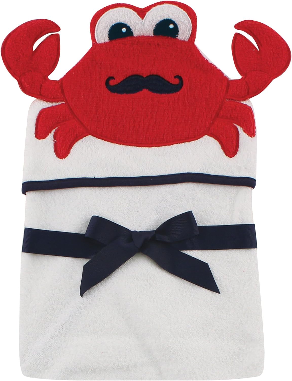 Hudson Baby Unisex Baby Cotton Animal Face Hooded Towel, Brown Bear 2-Pack, One Size(One Size Mr Crab)