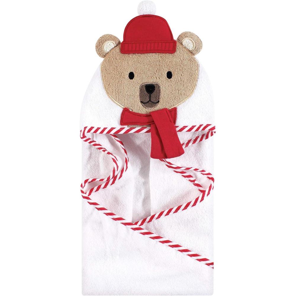 Hudson Baby Unisex Baby Cotton Animal Face Hooded Towel, Chic Bunny, One Size(Bear W Scarf)