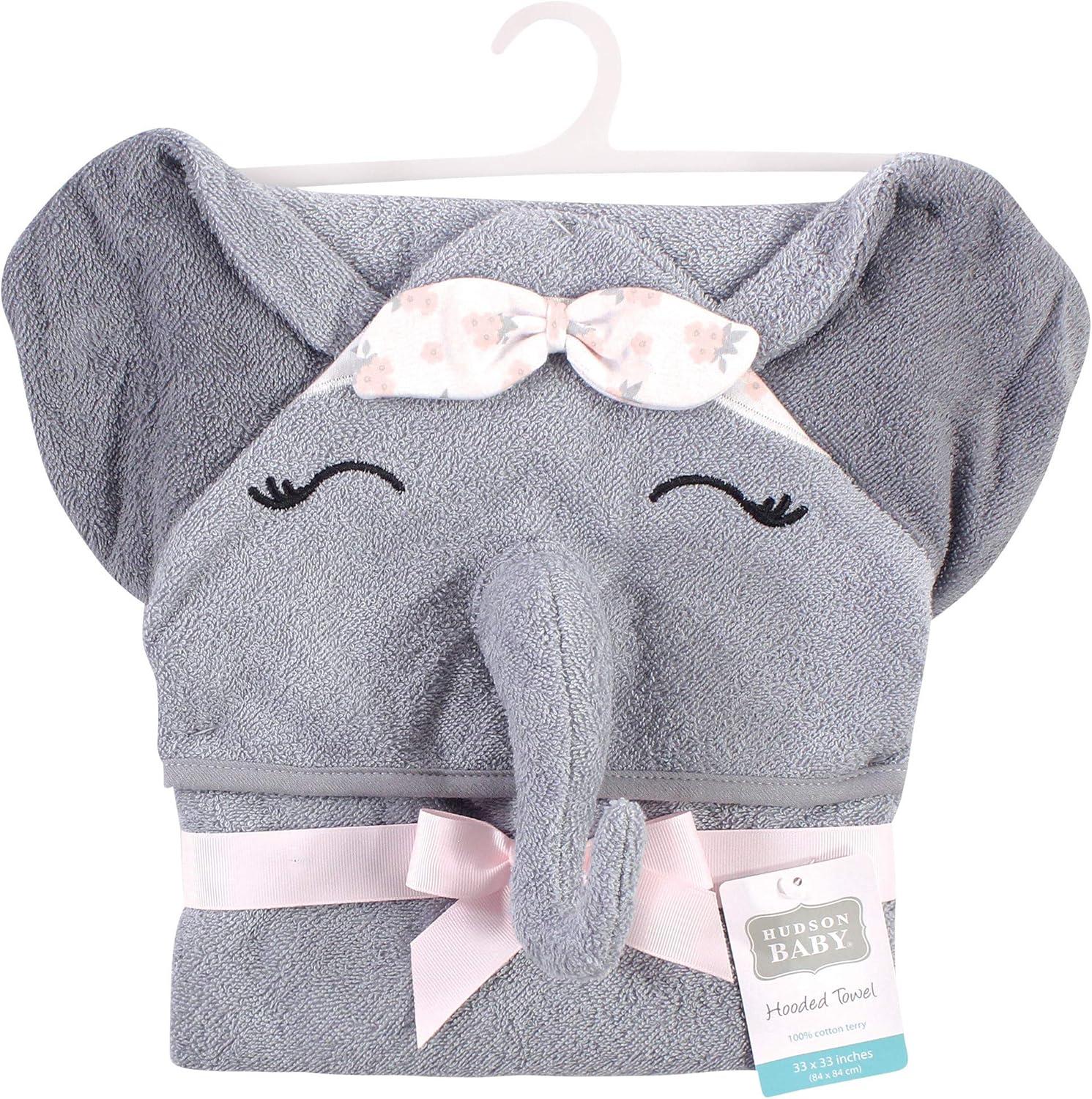Hudson Baby Unisex Baby Cotton Animal Face Hooded Towel, Chic Bunny, One Size(Flower Elephant)