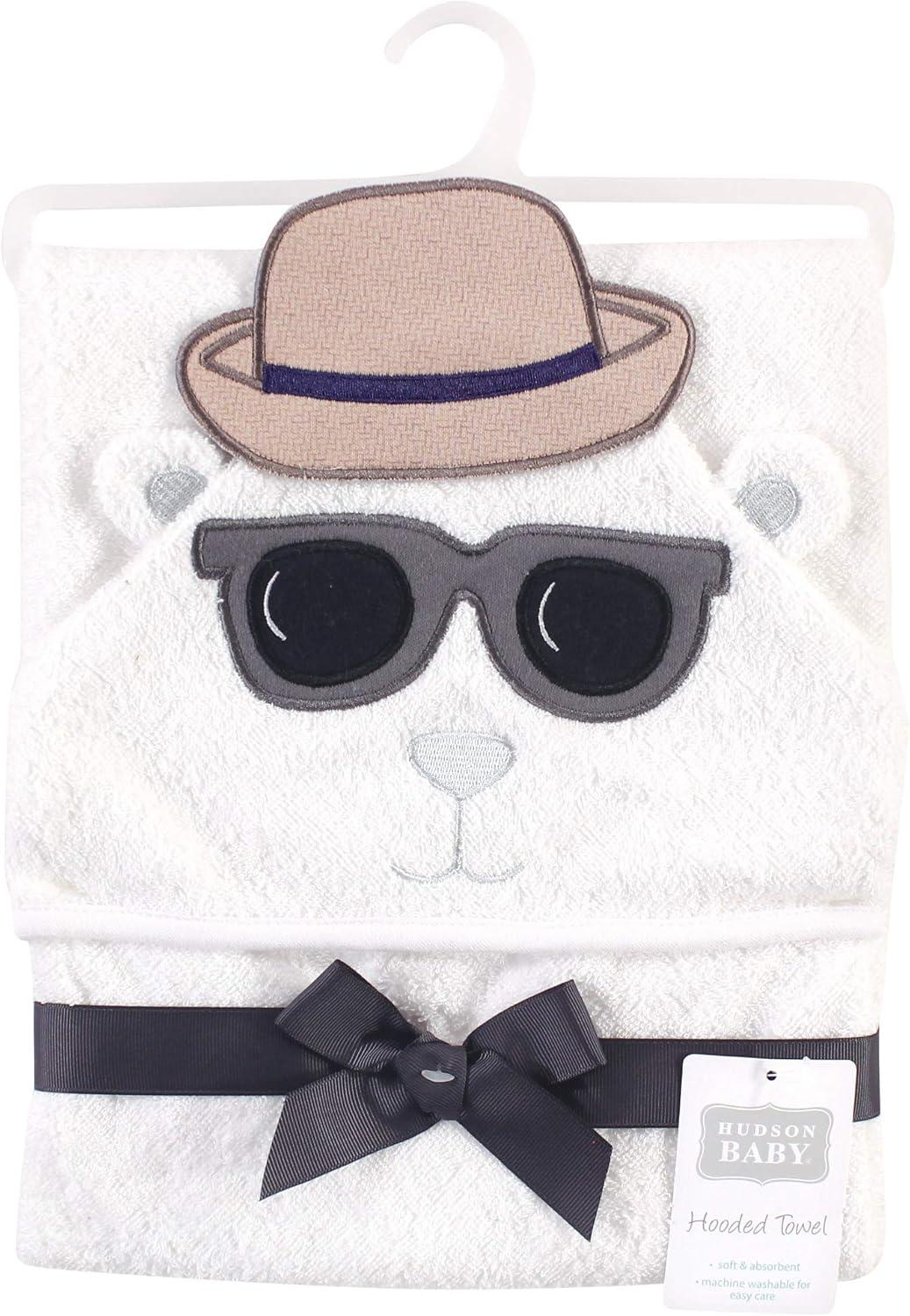 Hudson Baby Unisex Baby Cotton Animal Face Hooded Towel, Chic Bunny, One Size(Handsome Bear)