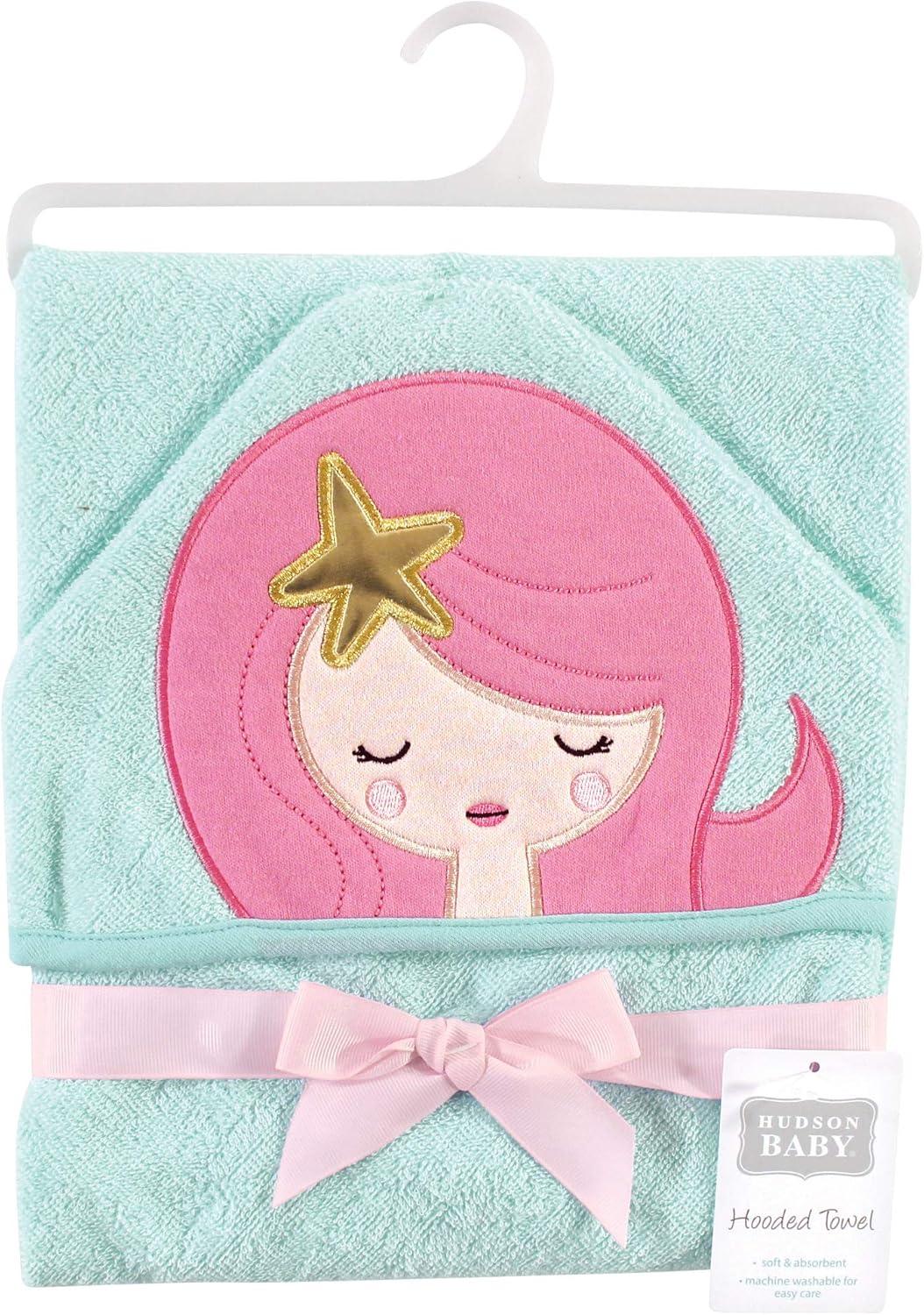 Hudson Baby Unisex Baby Cotton Animal Face Hooded Towel, Chic Bunny, One Size(Mermaid)