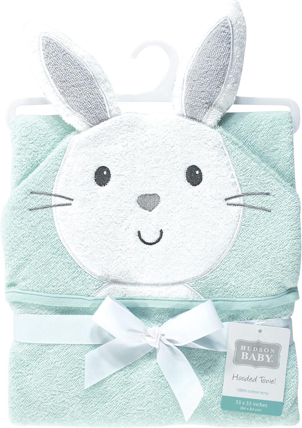 Hudson Baby Unisex Baby Cotton Animal Face Hooded Towel, Chic Bunny, One Size(Mint Bunny)