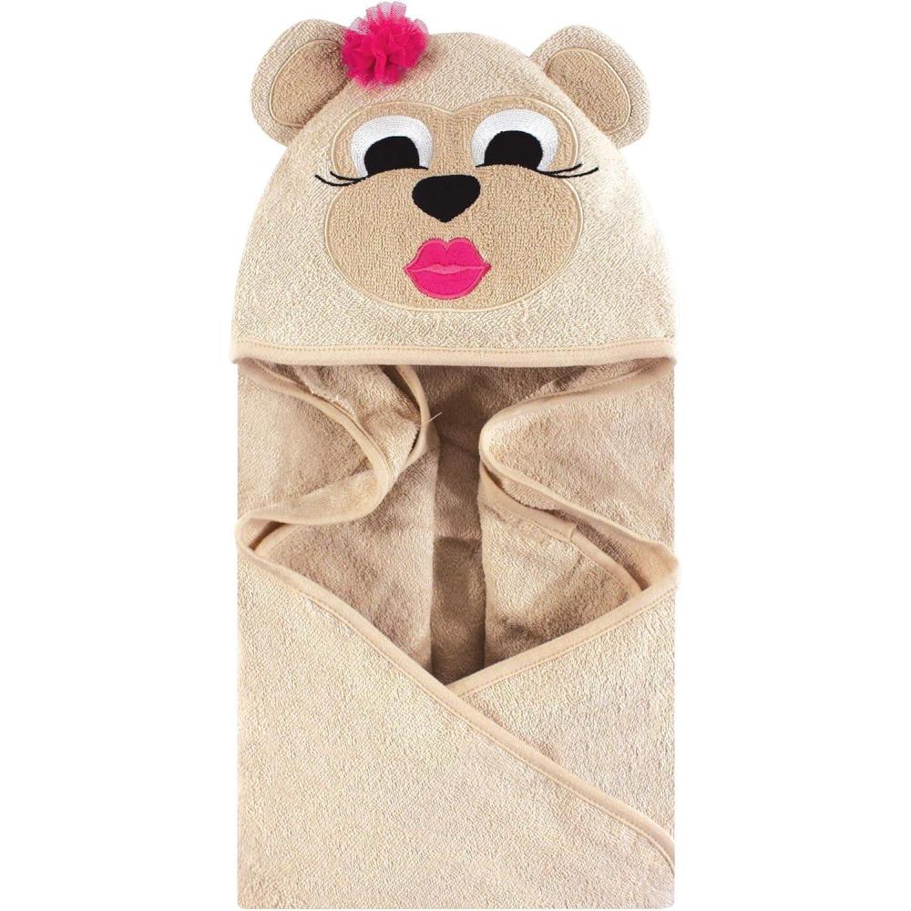 Hudson Baby Unisex Baby Cotton Animal Face Hooded Towel, Chic Bunny, One Size(Miss Monkey)