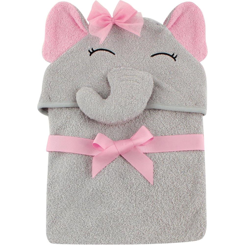 Hudson Baby Unisex Baby Cotton Animal Face Hooded Towel, Chic Bunny, One Size(Pretty Elephant)
