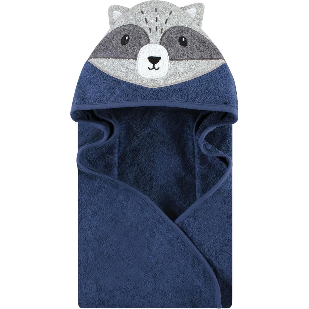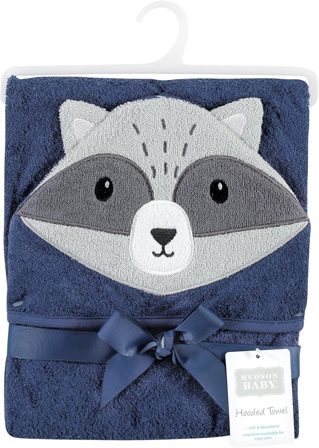 Hudson Baby Unisex Baby Cotton Animal Face Hooded Towel, Chic Bunny, One Size(Raccoon)