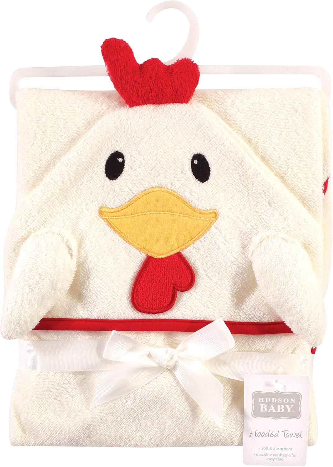 Hudson Baby Unisex Baby Cotton Animal Face Hooded Towel, Chic Bunny, One Size(Rooster)