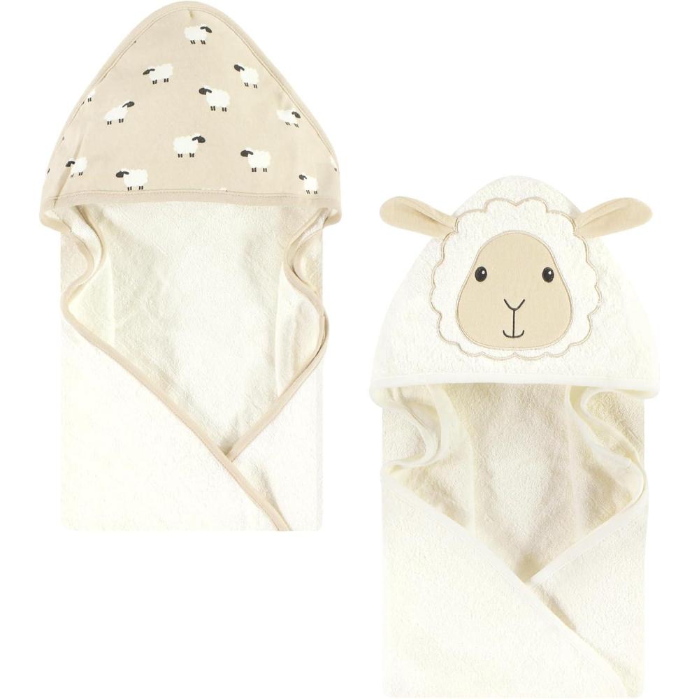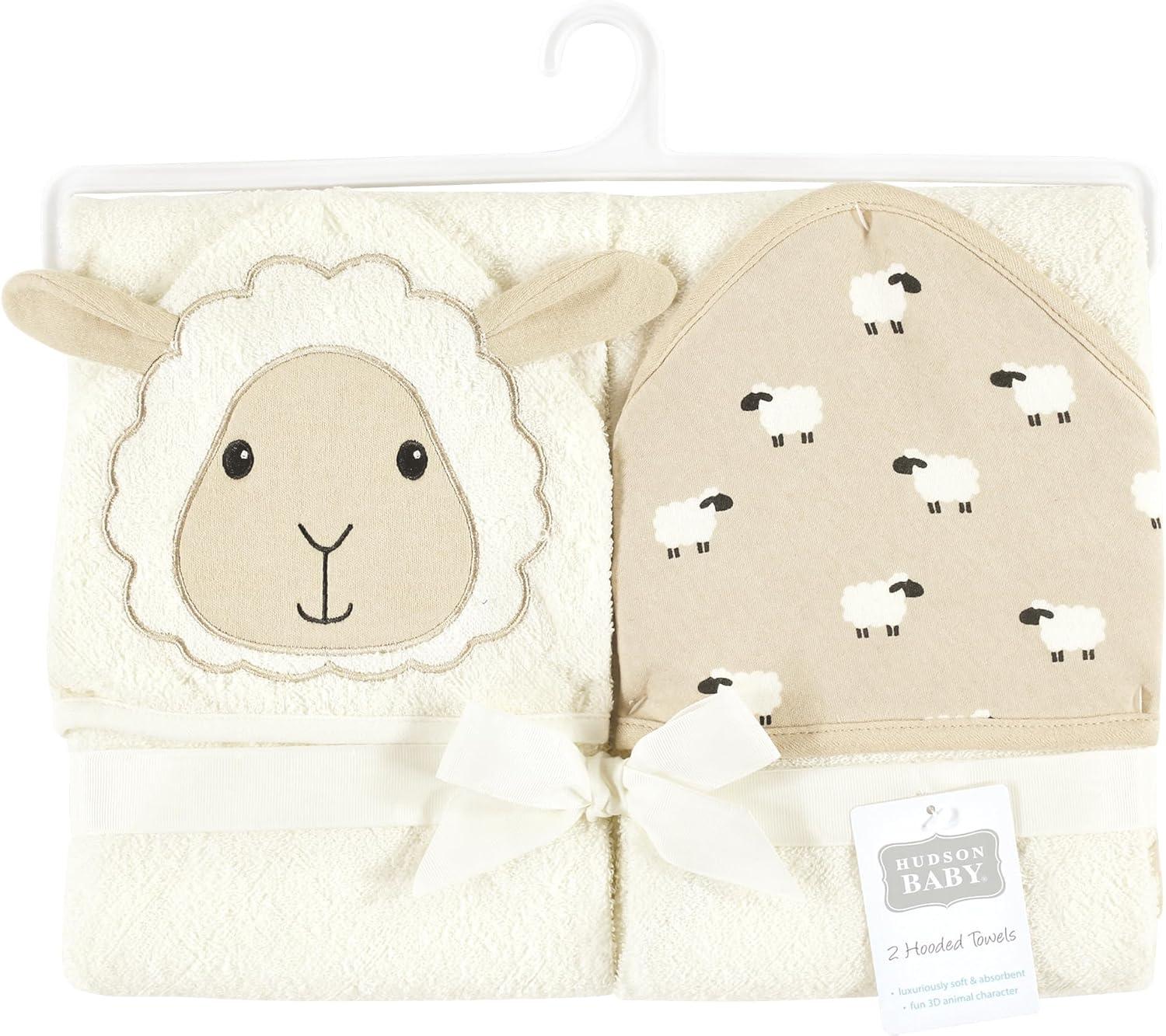 Hudson Baby Unisex Baby Cotton Animal Face Hooded Towel, Chic Bunny, One Size(Sheep)
