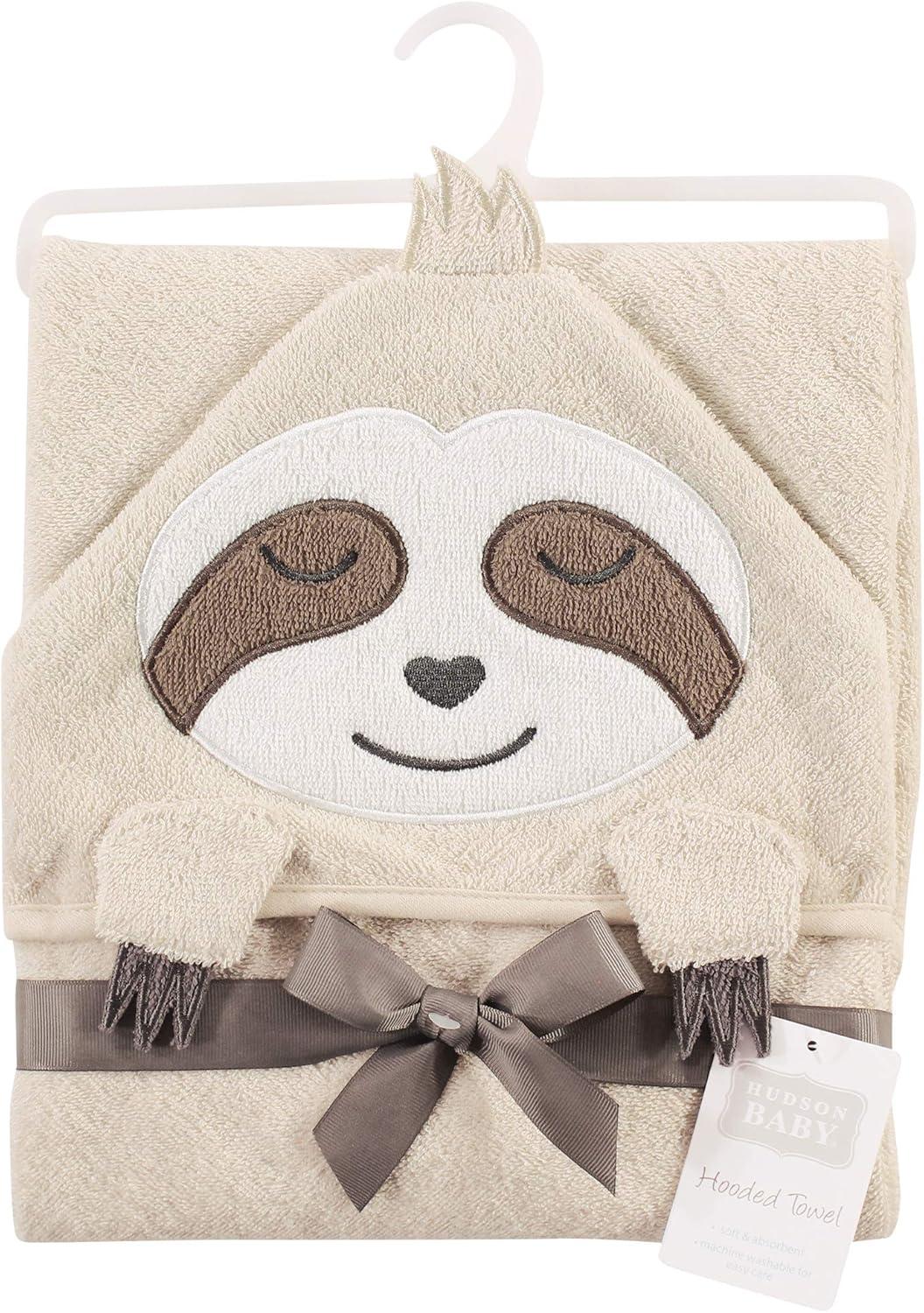 Hudson Baby Unisex Baby Cotton Animal Face Hooded Towel, Chic Bunny, One Size(Sloth)