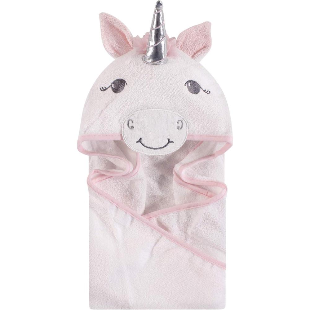 Hudson Baby Unisex Baby Cotton Animal Face Hooded Towel, Chic Bunny, One Size(White Unicorn)