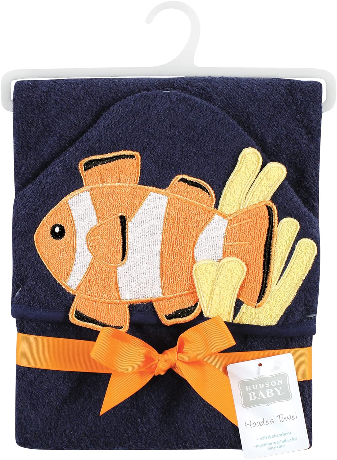 Hudson Baby Unisex Baby Cotton Animal Face Hooded Towel, Ladybug, One Size(Clownfish)