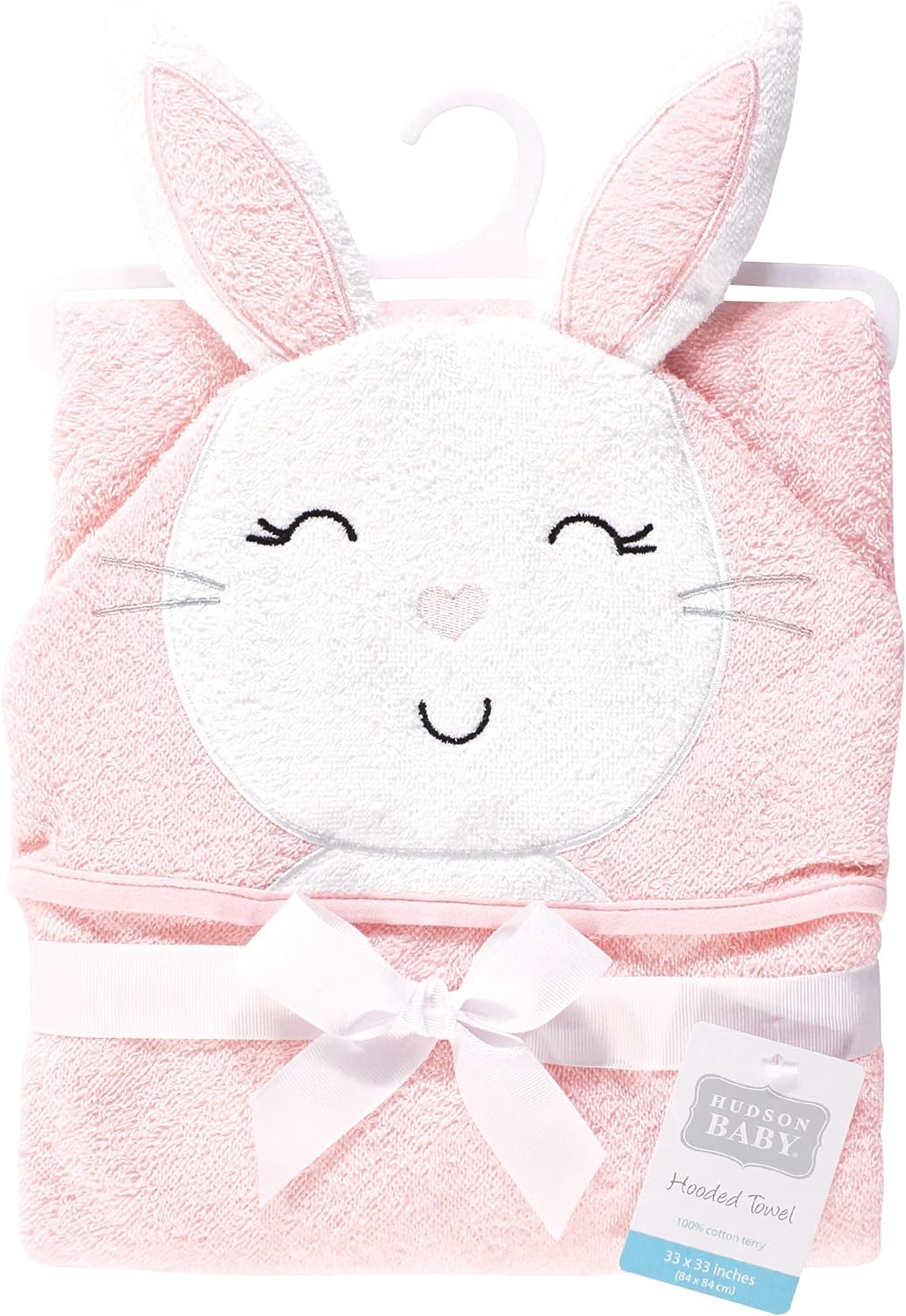 Hudson Baby Unisex Baby Cotton Animal Face Hooded Towel, Ladybug, One Size(Pink Bunny)