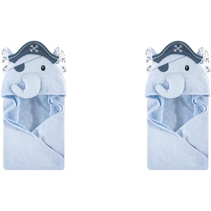 Hudson Baby Unisex Baby Cotton Animal Face Hooded Towel, Ladybug, One Size(Pirate Elephant)