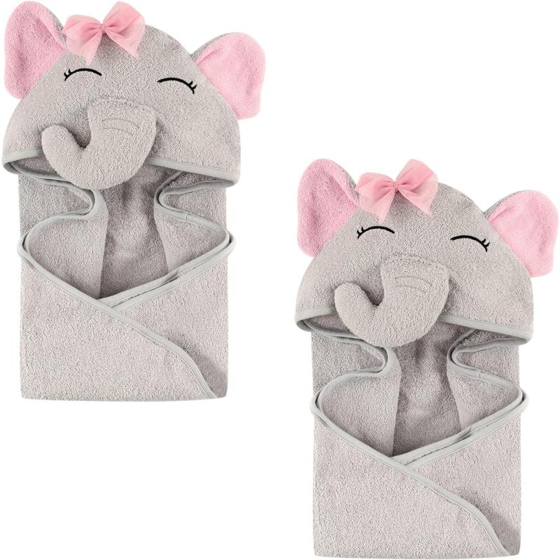 Hudson Baby Unisex Baby Cotton Animal Face Hooded Towel, Ladybug, One Size(Pretty Elephant 2-piece)