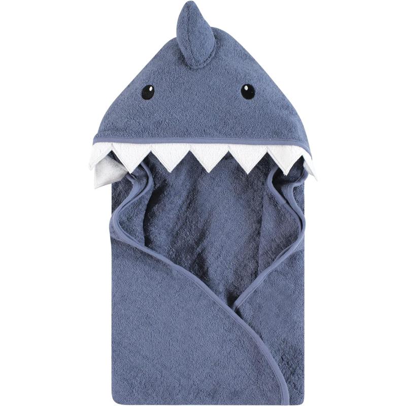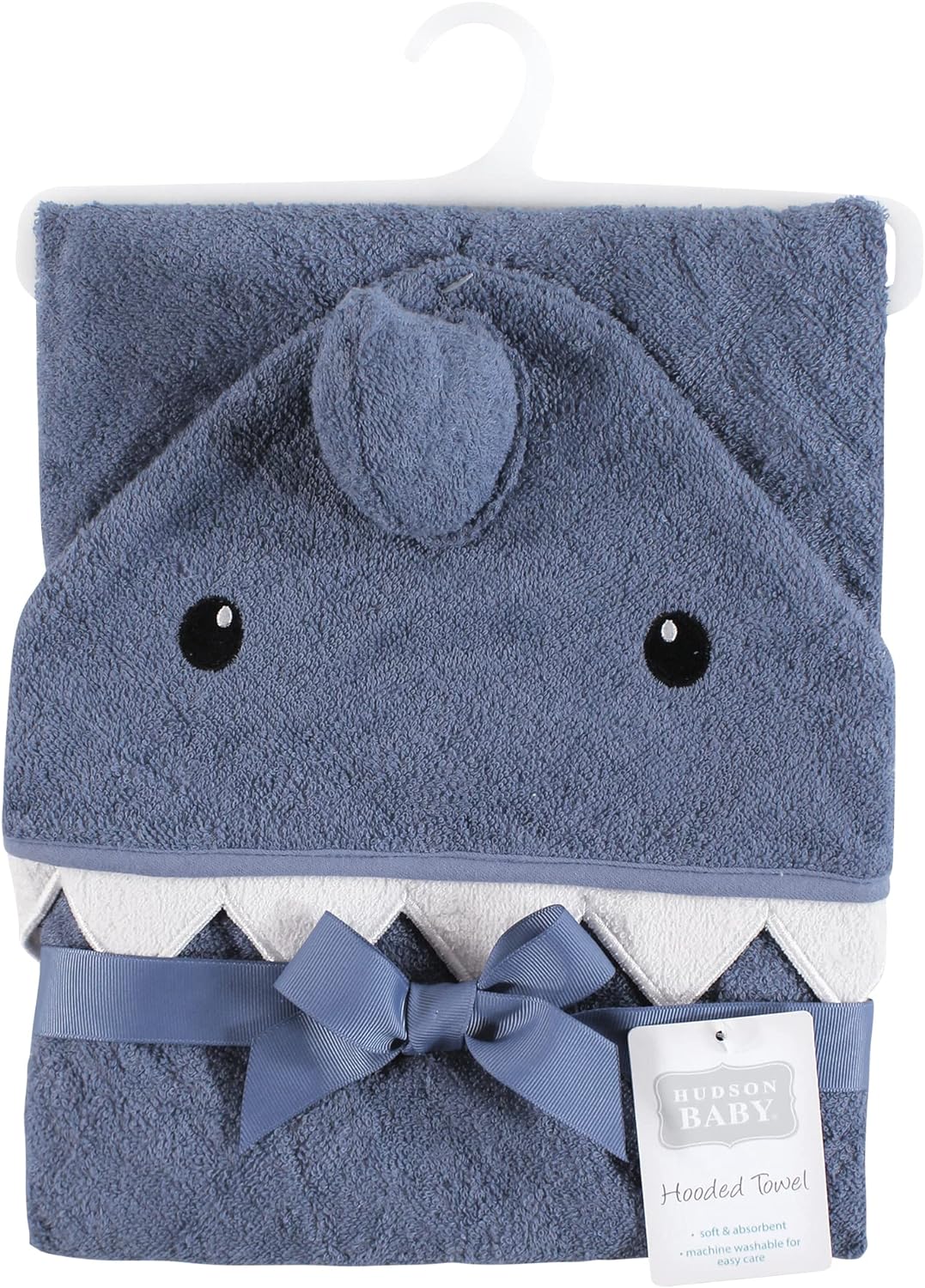 Hudson Baby Unisex Baby Cotton Animal Face Hooded Towel, Miss Penguin, One Size(Blue Shark)