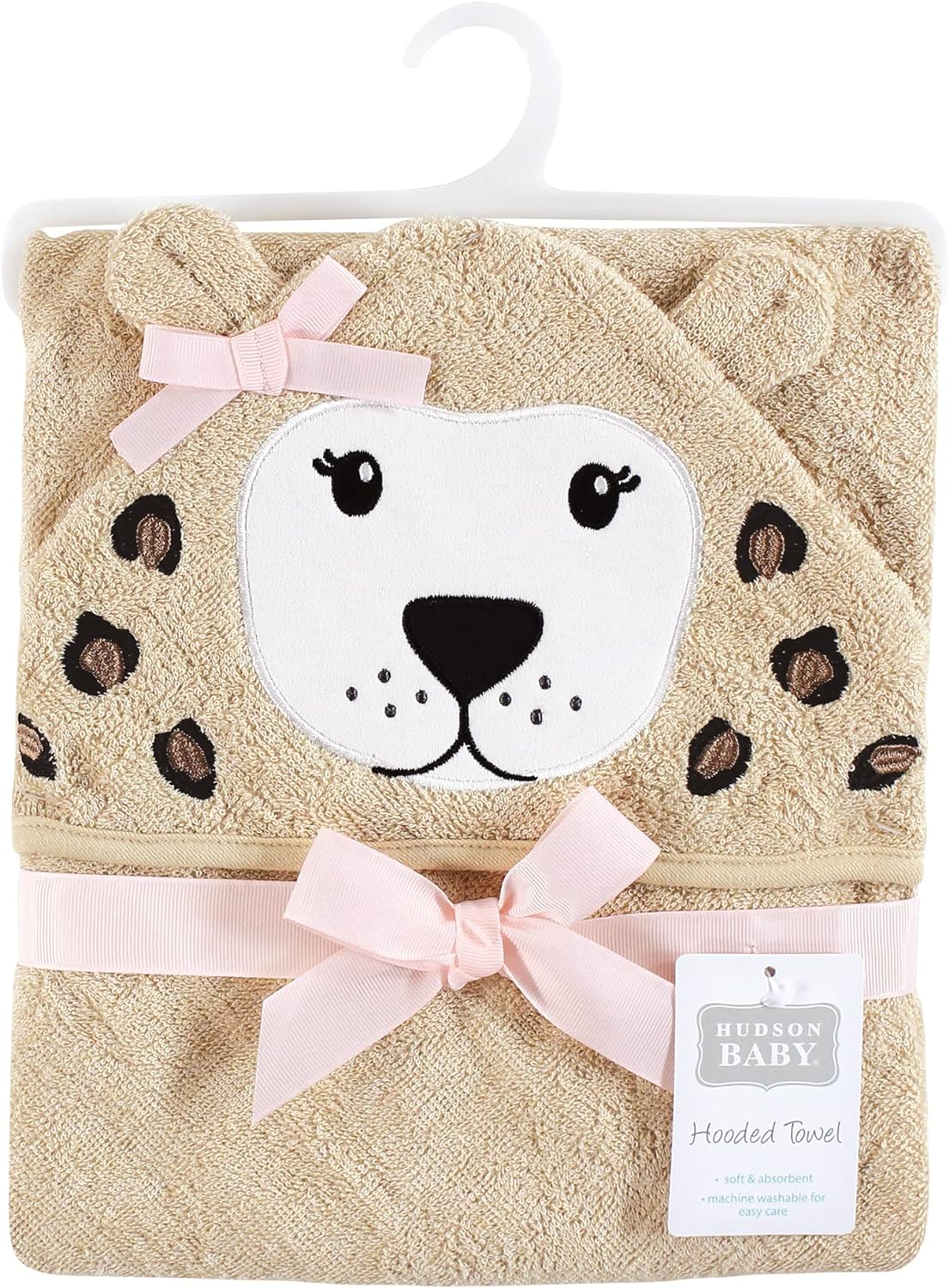 Hudson Baby Unisex Baby Cotton Animal Face Hooded Towel, Miss Penguin, One Size(Leopard)