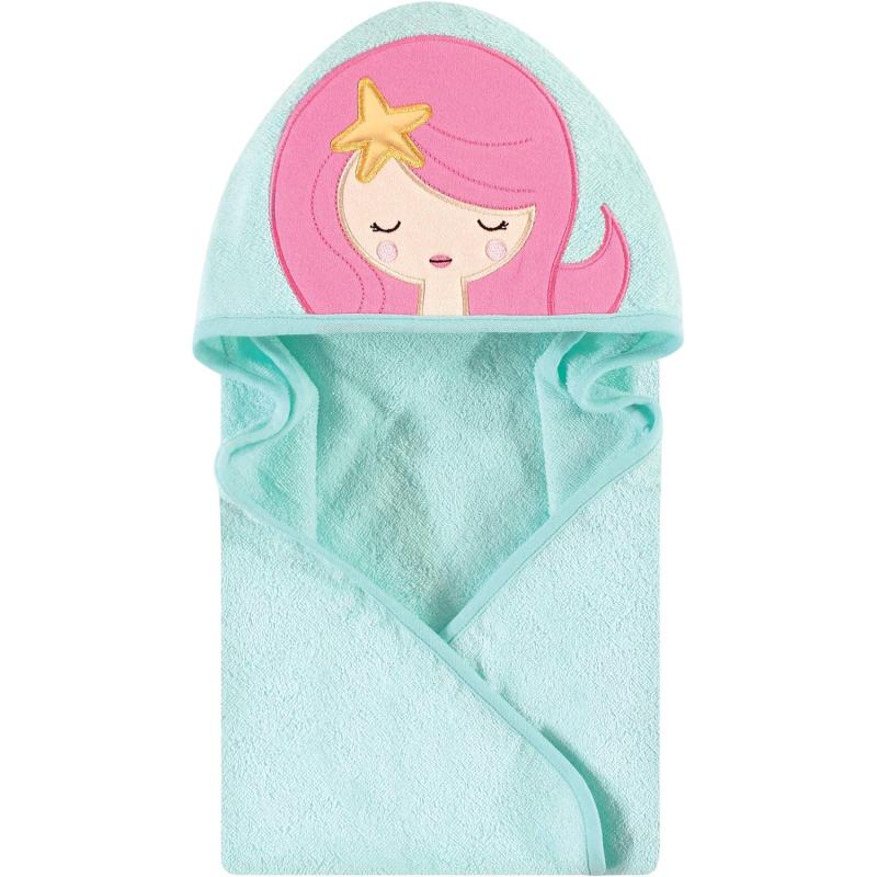 Hudson Baby Unisex Baby Cotton Animal Face Hooded Towel, Miss Penguin, One Size(Mermaid)