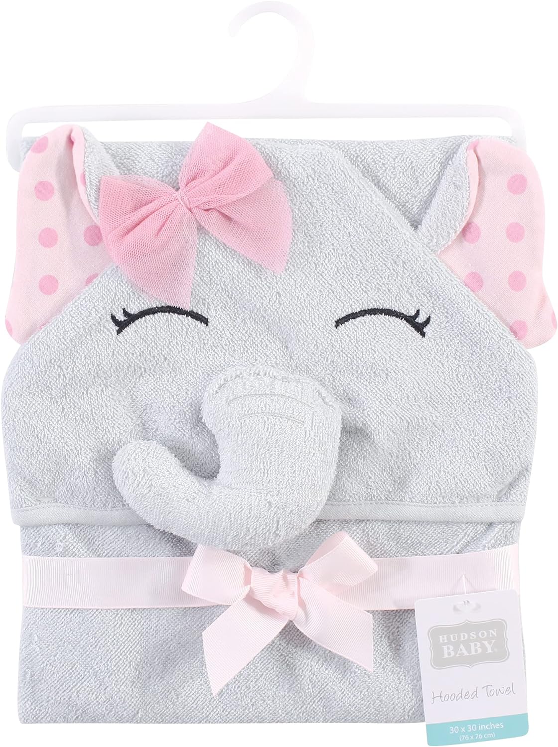 Hudson Baby Unisex Baby Cotton Animal Face Hooded Towel, Miss Penguin, One Size(Pink Dots Pretty Elephant)