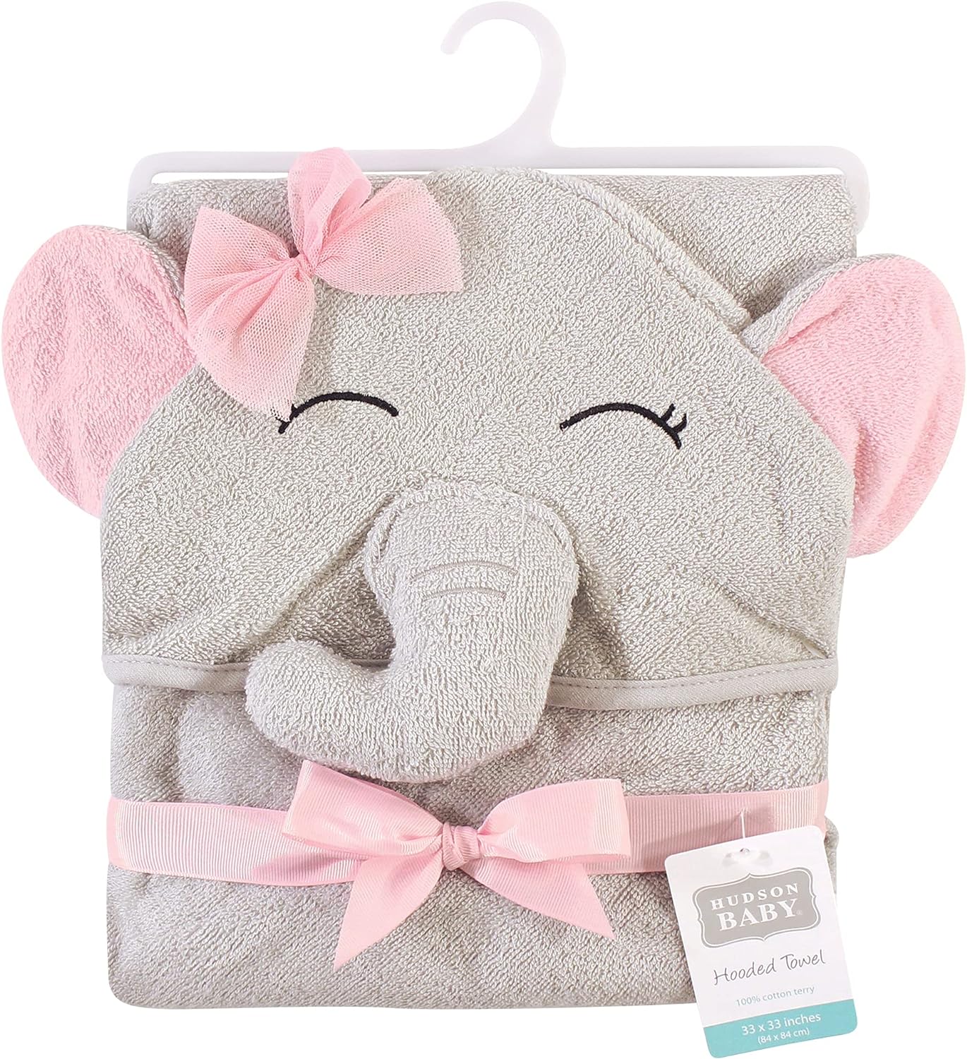 Hudson Baby animal face hooded towels are made of 100% woven cotton terry and are available in a variety of adorable animal face options. Our hooded towels are more than generously sized at 33×33 inches to cover baby head to toe after bath or swim time. Our fun designs and large towels are perfect for baby and toddlers.