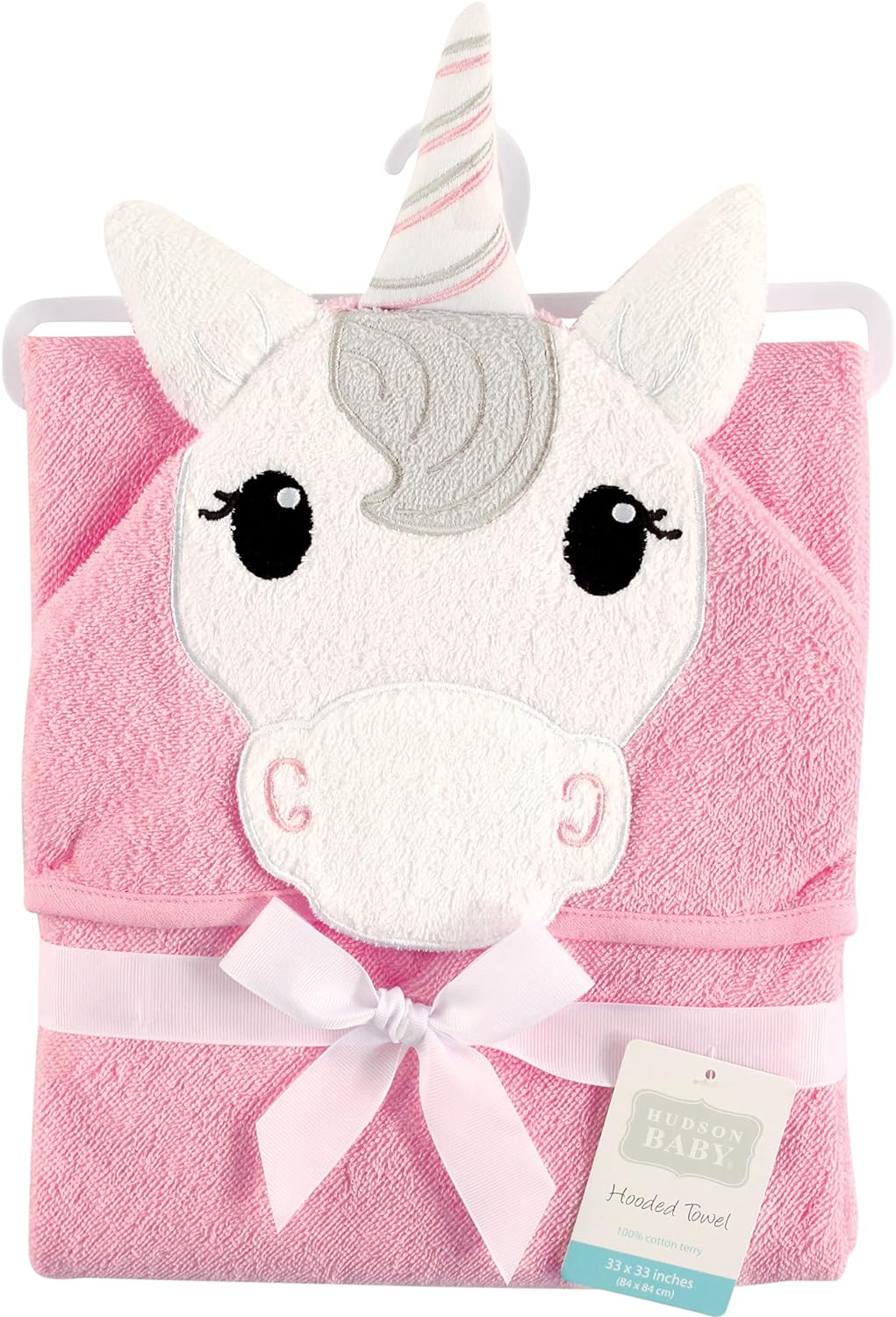 Hudson Baby Unisex Baby Cotton Animal Face Hooded Towel, Miss Penguin, One Size(Unicorn)