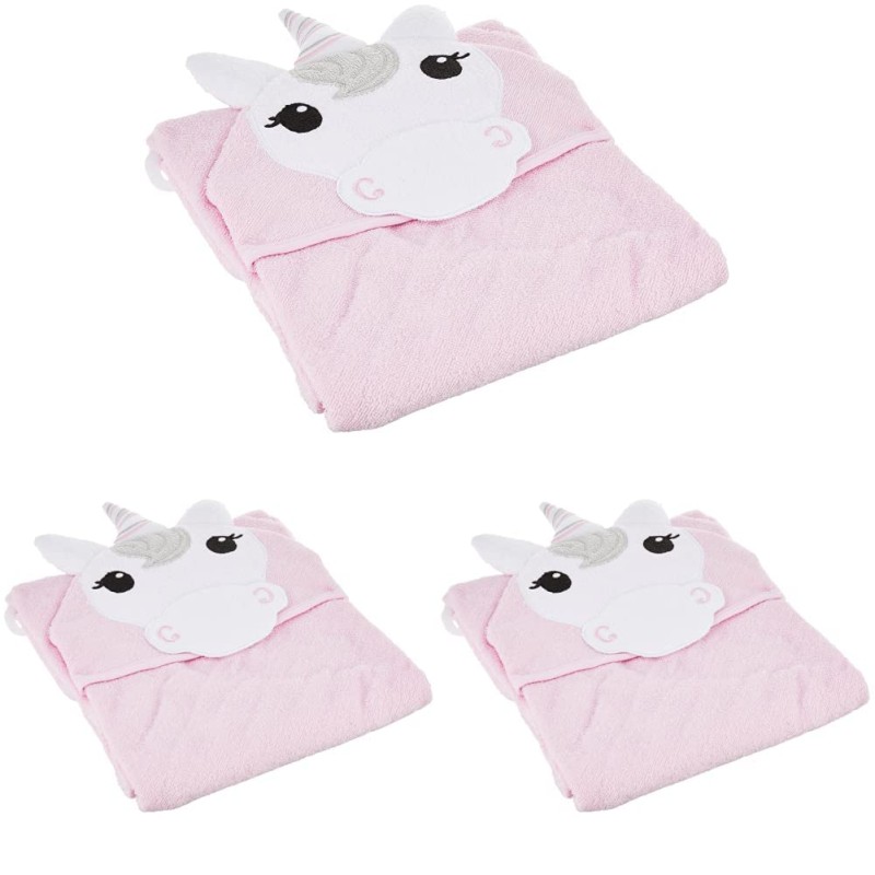 Hudson Baby Unisex Baby Cotton Animal Face Hooded Towel, Unicorn, One Size (Pack of 3)(Hudson Baby Unisex Baby Cotton Animal Face Hooded Towel, Unicorn, One Size (Pack of 3))