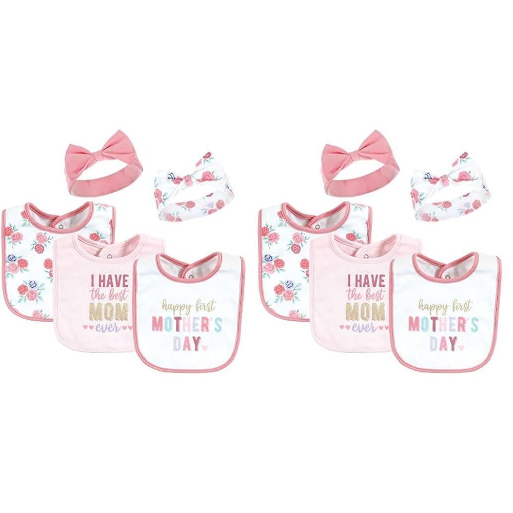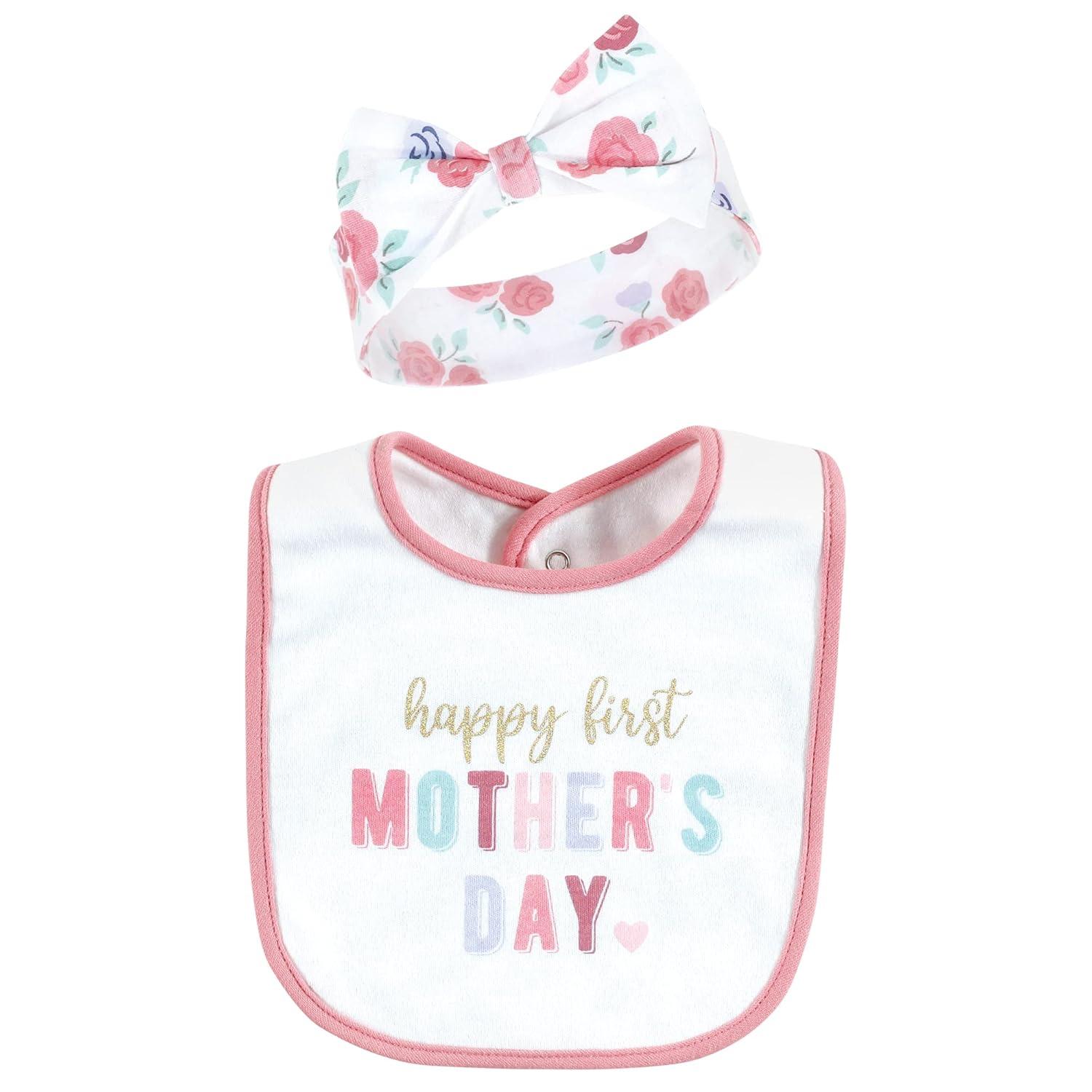 Hudson Baby Unisex Baby Cotton Bib and Headband or Caps Set, Mothers Day, One Size (Pack of 2)