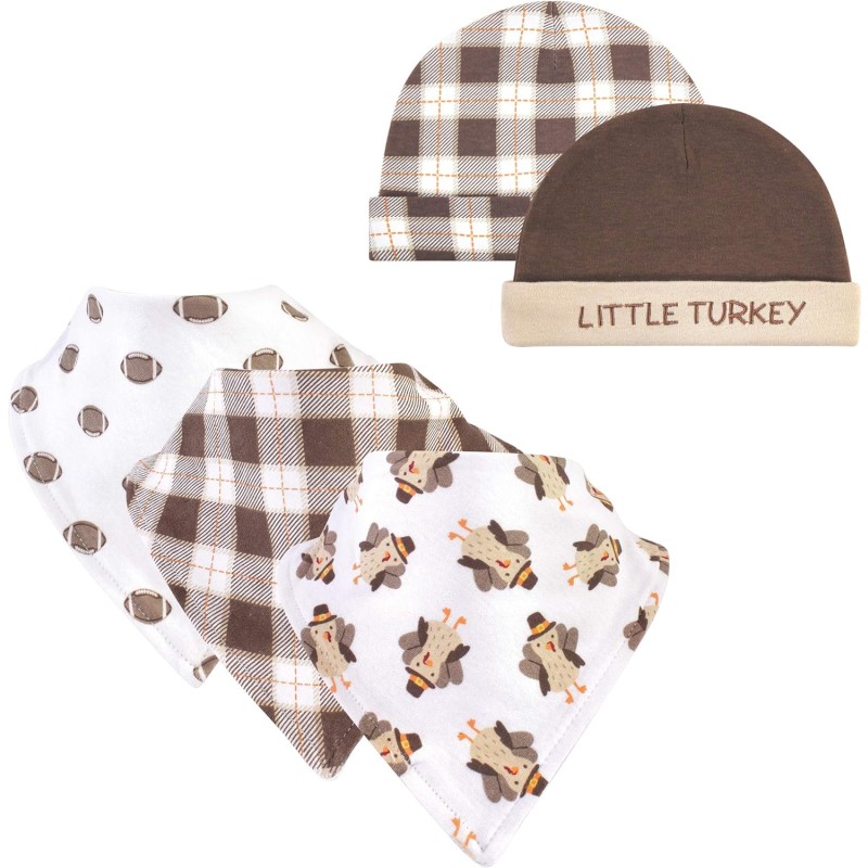 Hudson Baby Unisex Baby Cotton Bib and Headband Set(Boy Turkey)
