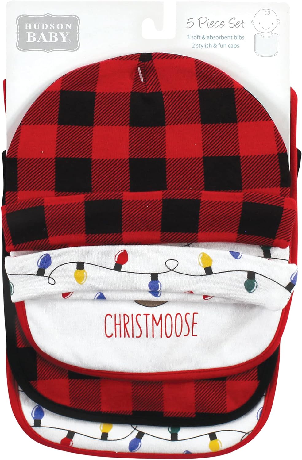 Hudson Baby Unisex Baby Cotton Bib and Headband Set(Christmoose)