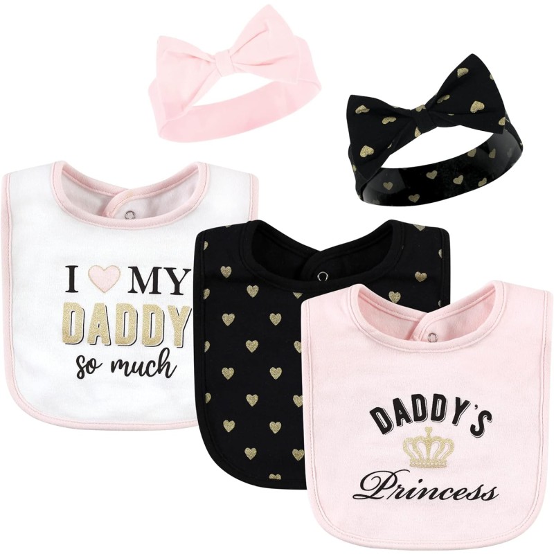 Hudson Baby Unisex Baby Cotton Bib and Headband Set(Daddys Princess)