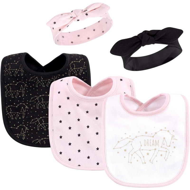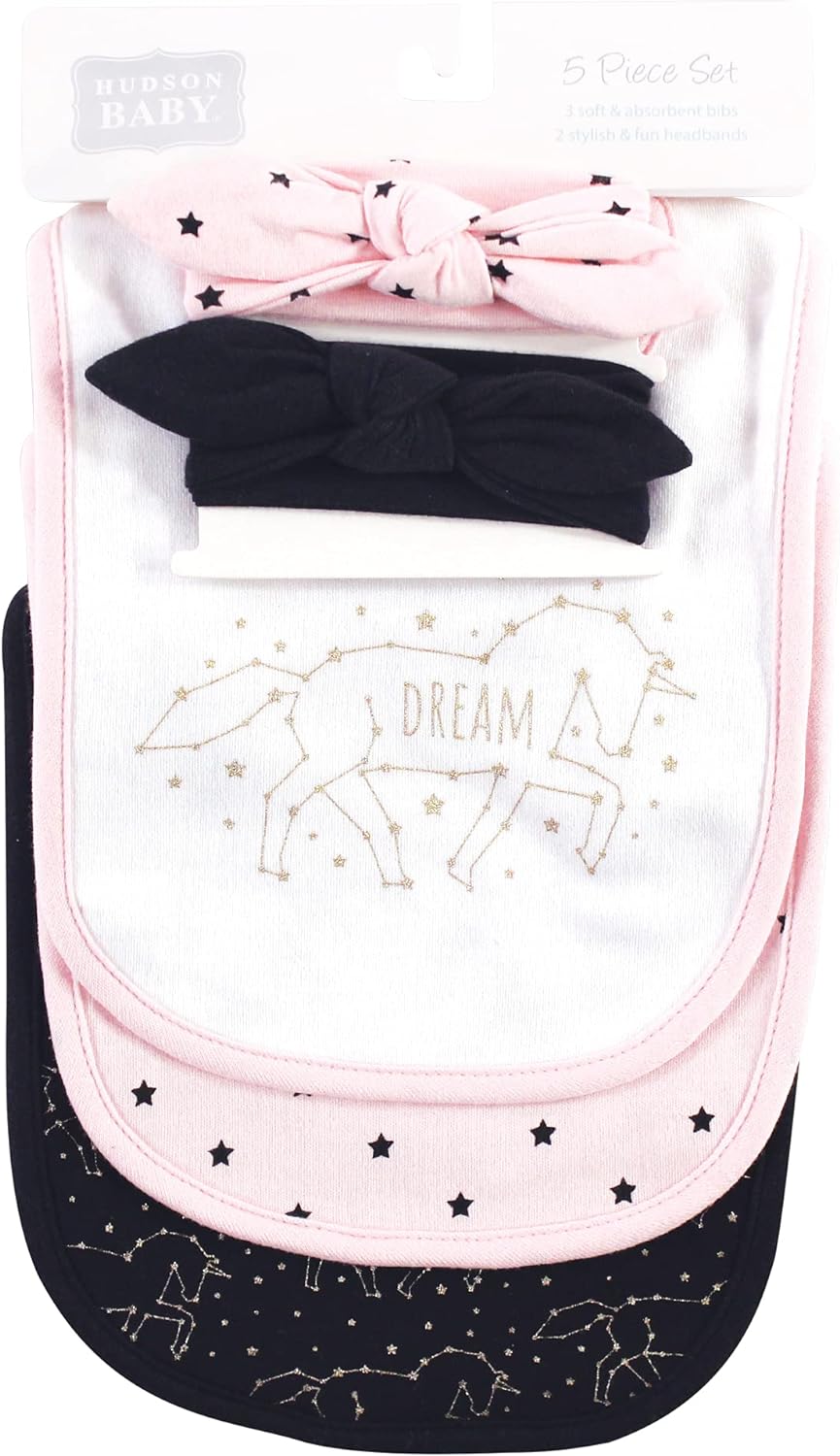 Hudson Baby Unisex Baby Cotton Bib and Headband Set(Dream Unicorn)