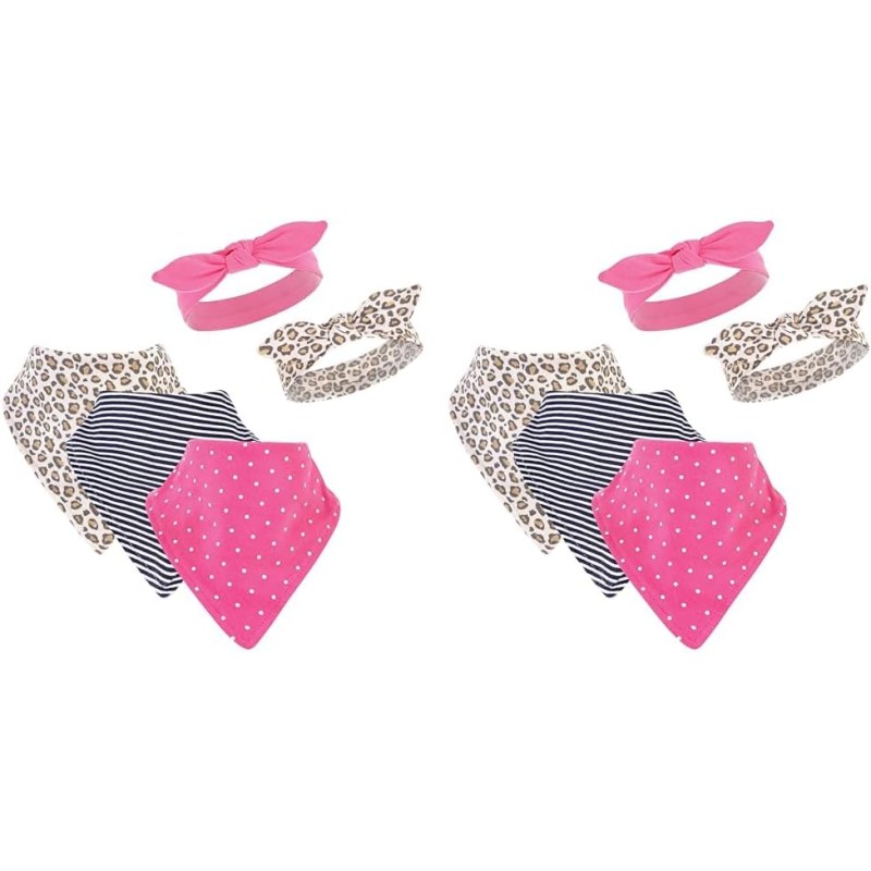 Hudson Baby is a premium baby basics brand featuring stylish clothing, bath and bedding baby essentials. Hudson Baby 5-Pack Bandana Bibs & Headband Set are an adorable set for moms looking for fashionable matching bandana bibs and headbands and a great baby shower gift. Each set features three bandana bibs and two headbands with bibs made of cotton-poly blend and headbands made of cotton and spandex. Each set features coordinated prints and patterns. Ideal for ages 0 months to 9 months.