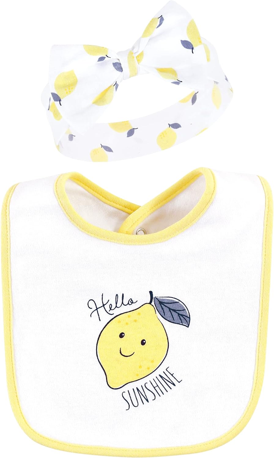 Hudson Baby Unisex Baby Cotton Bib and Headband Set(Navy Lemon)
