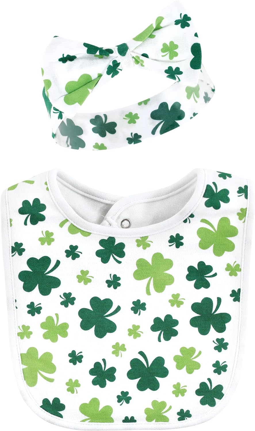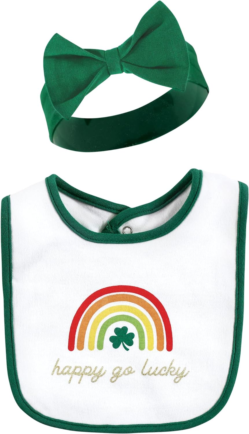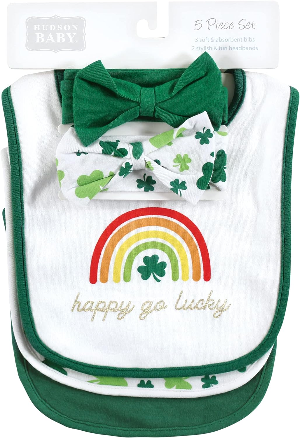 Hudson Baby Unisex Baby Cotton Bib and Headband Set(St Patricks Rainbow)