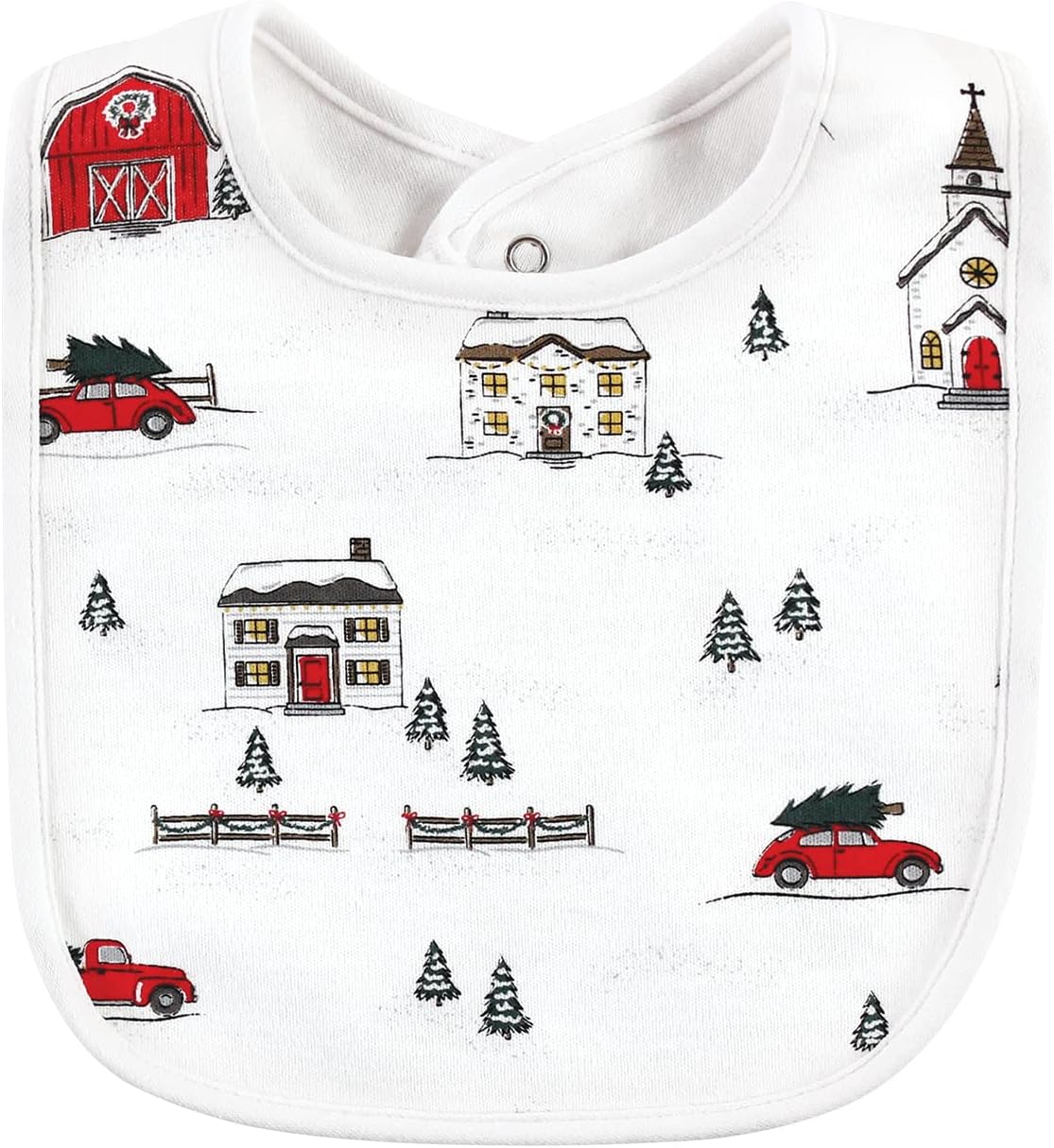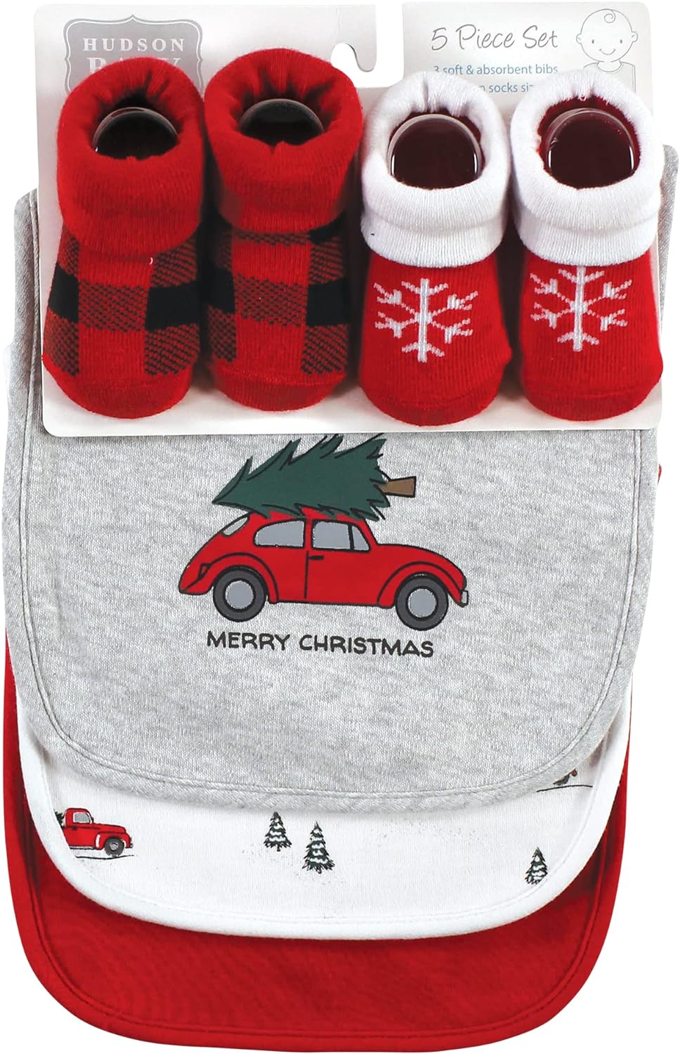 Hudson Baby Unisex Baby Cotton Bib and Sock Set(Christmas Scene)