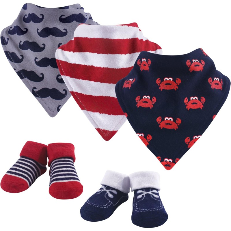 Hudson Baby Unisex Baby Cotton Bib and Sock Set(Crab)