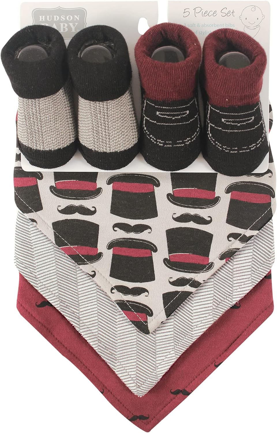 Hudson Baby Unisex Baby Cotton Bib and Sock Set(Gentleman)