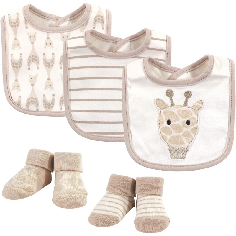 Hudson Baby Unisex Baby Cotton Bib and Sock Set(Giraffe)