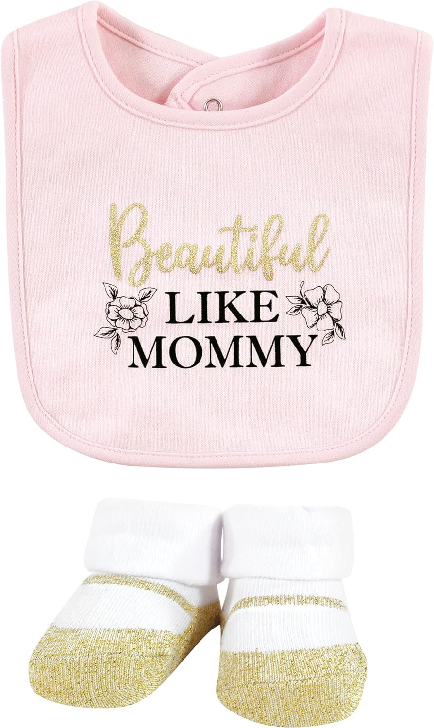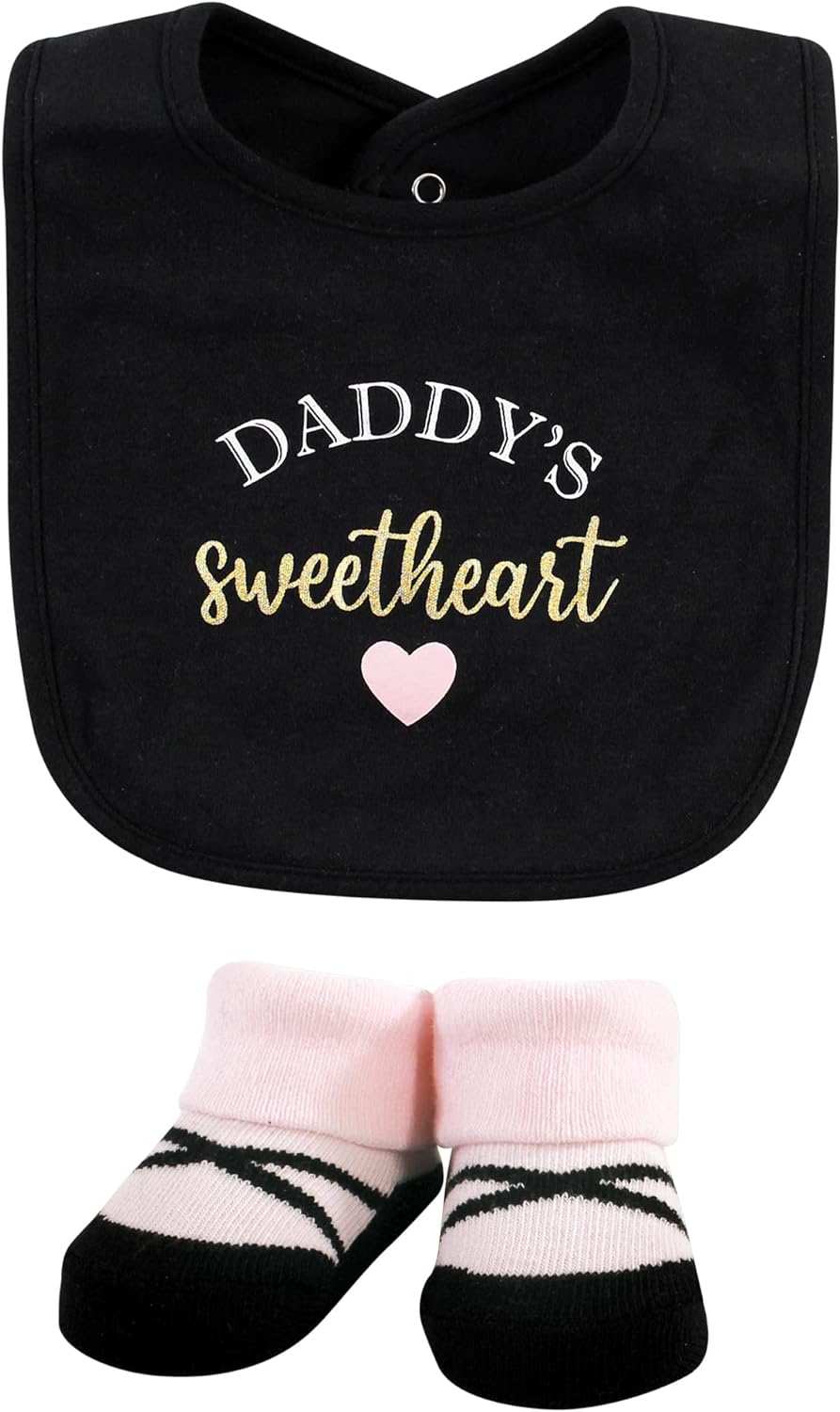 Hudson Baby Unisex Baby Cotton Bib and Sock Set(Mom Dad Toile)