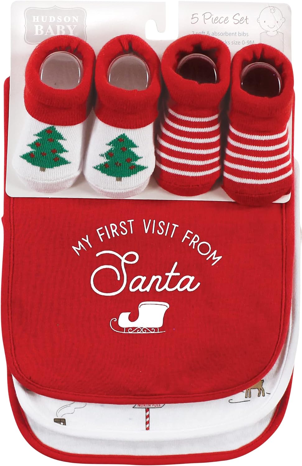 Hudson Baby Unisex Baby Cotton Bib and Sock Set(North Pole)