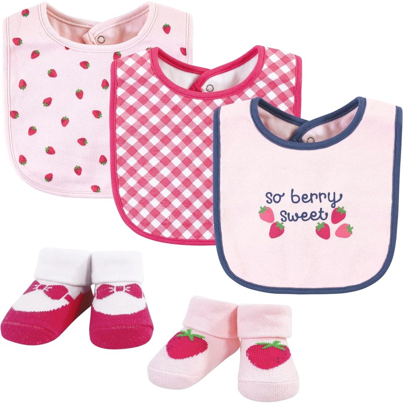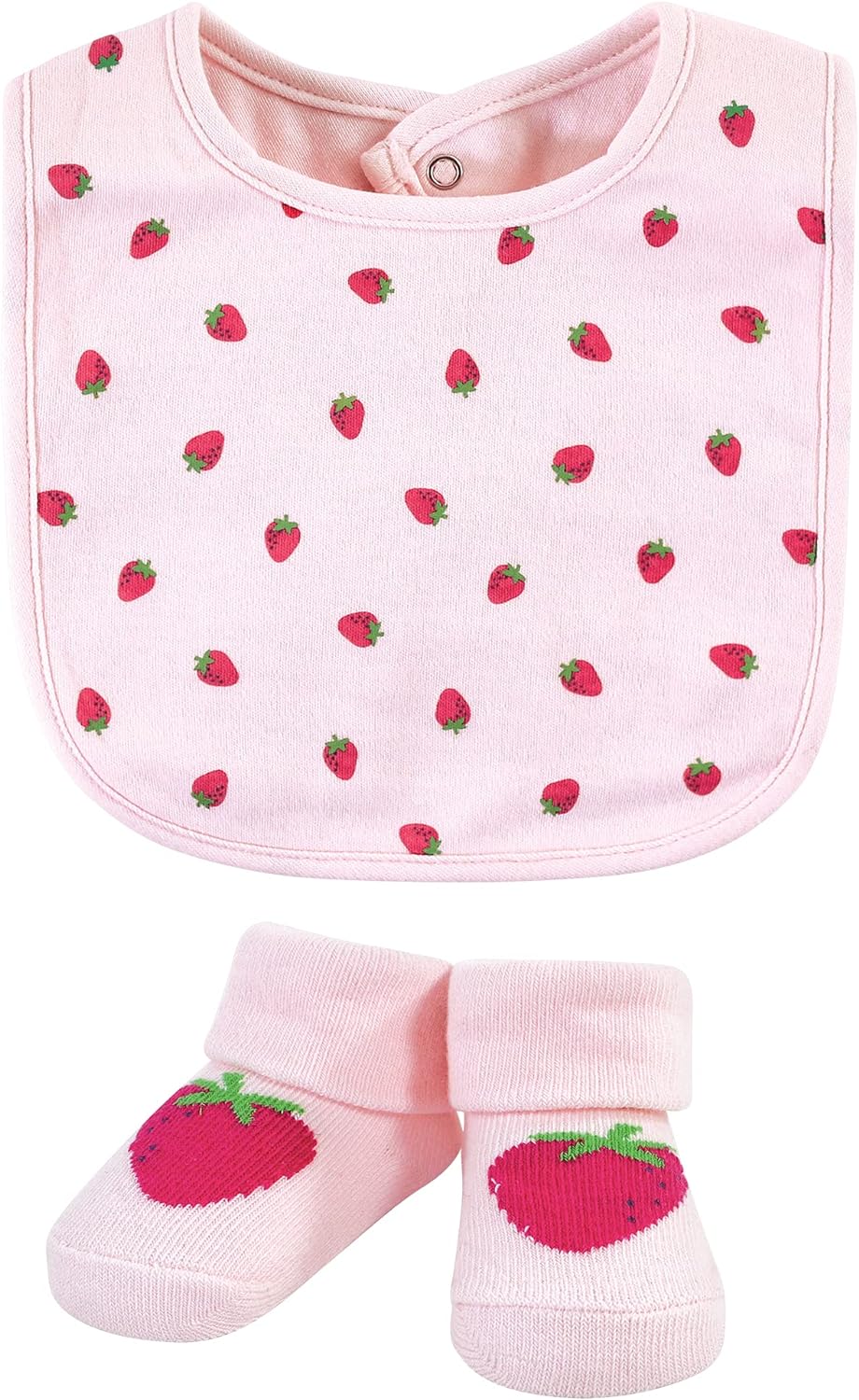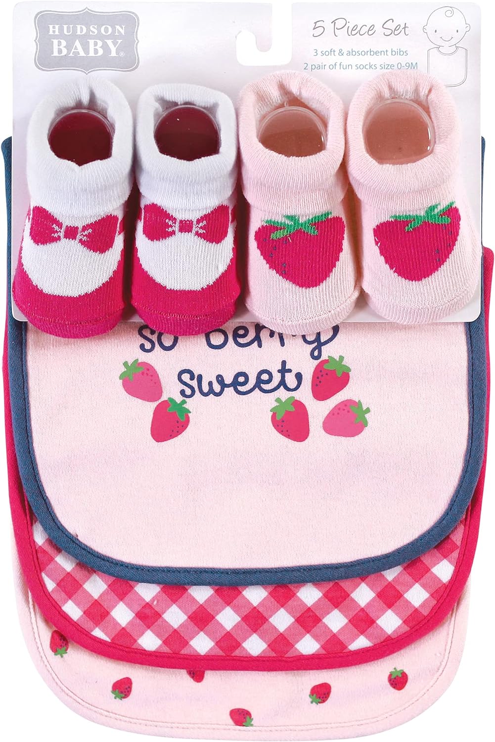 Hudson Baby Unisex Baby Cotton Bib and Sock Set(Pink Strawberry)