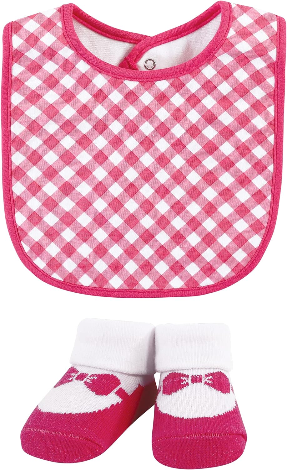 Hudson Baby Unisex Baby Cotton Bib and Sock Set(Pink Bonjour)