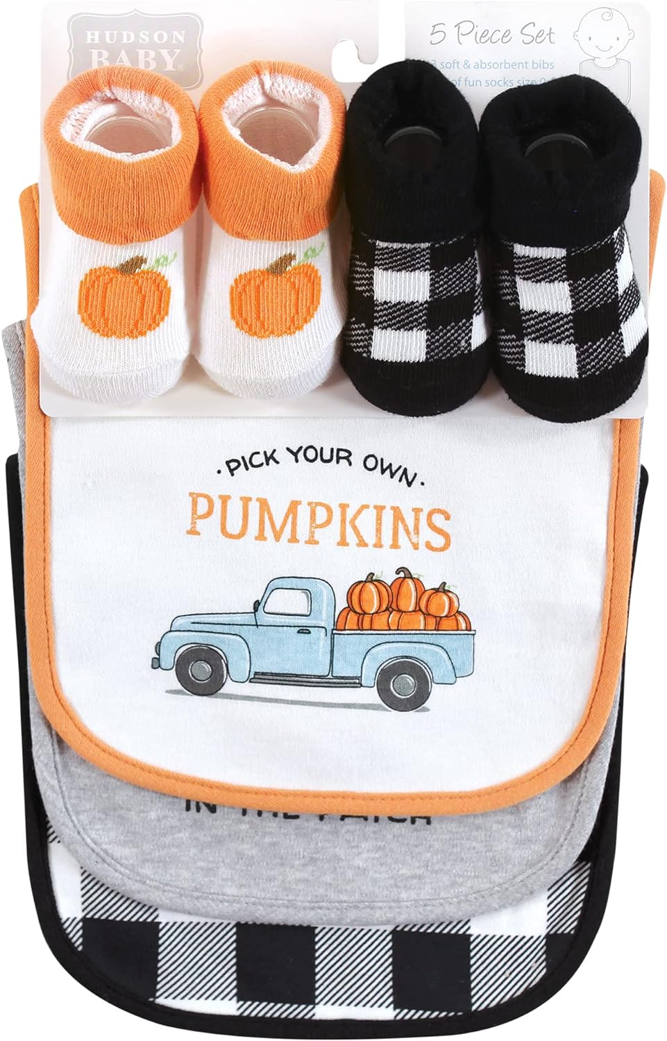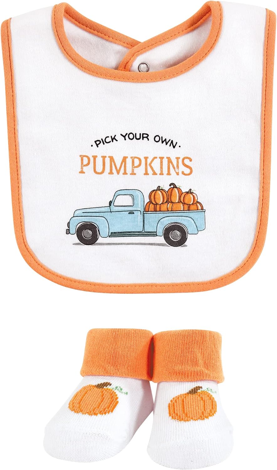 Hudson Baby Unisex Baby Cotton Bib and Sock Set(Pumpkin Truck)