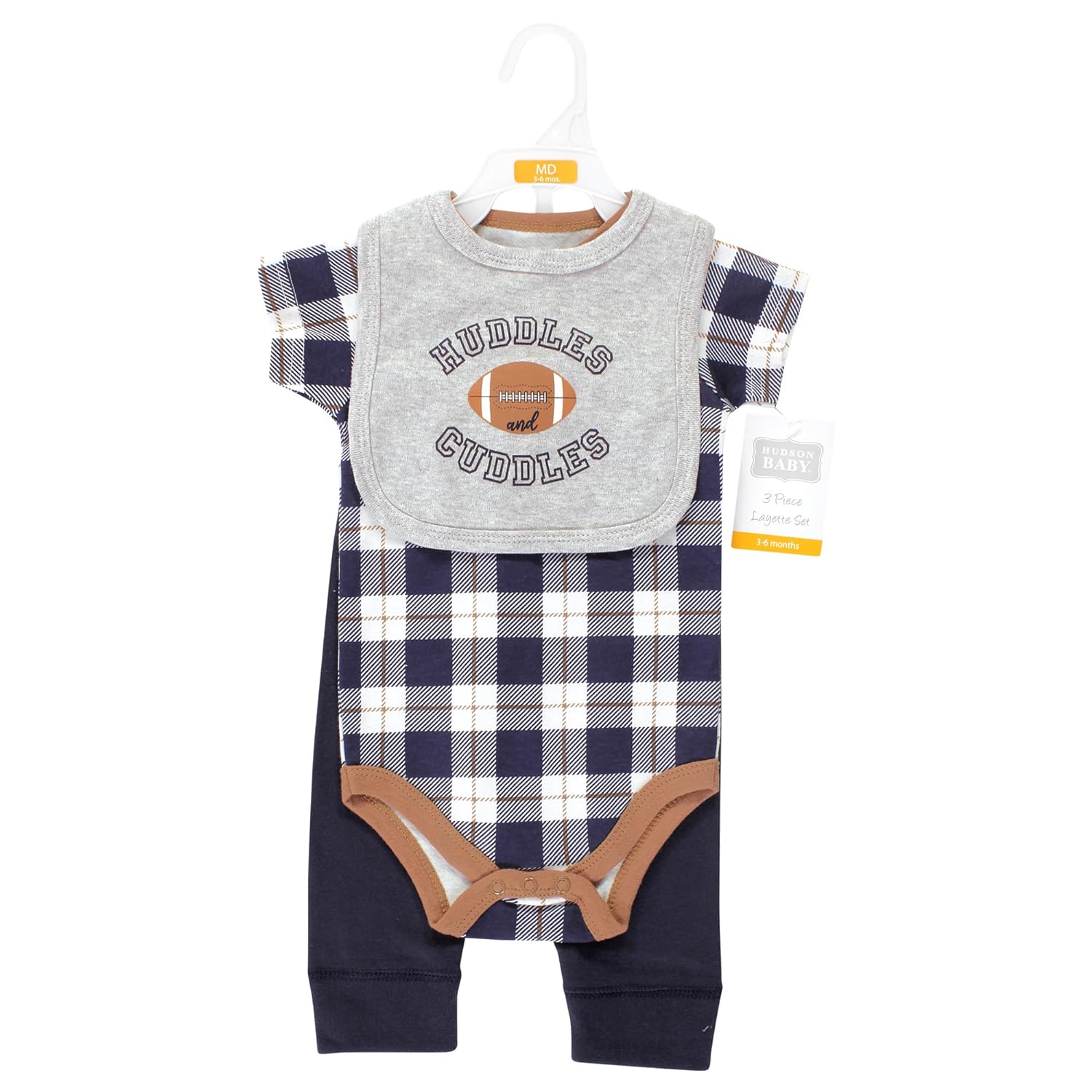 Hudson Baby Unisex Baby Cotton Bodysuit, Pant and Bib Set, Football Huddles, Newborn(Hudson Baby Unisex Baby Cotton Bodysuit, Pant and Bib Set, Football Huddles, Newborn)