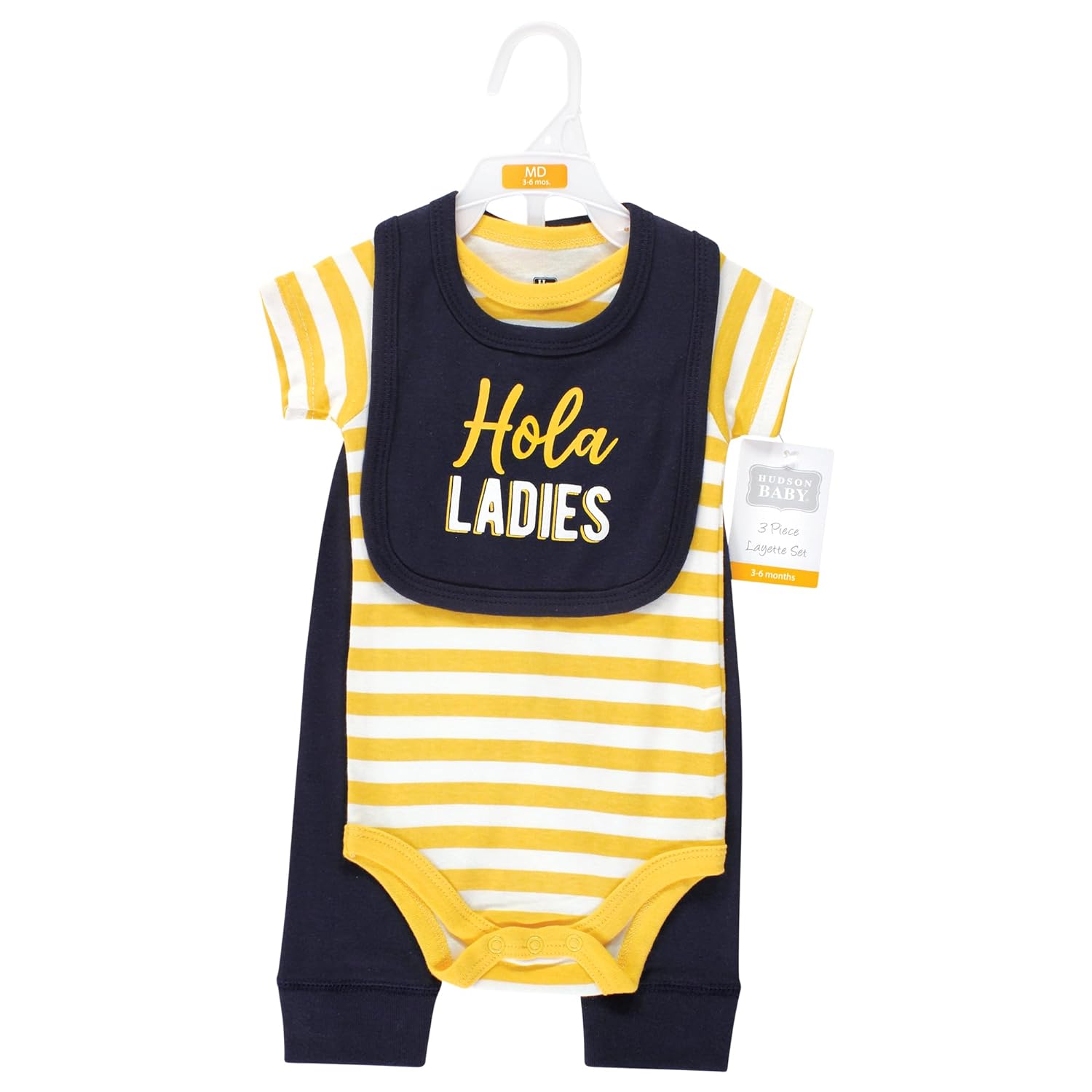 Hudson Baby Unisex Baby Cotton Bodysuit, Pant and Bib Set, Hola Ladies, 6-9 Months(Hudson Baby Unisex Baby Cotton Bodysuit, Pant and Bib Set, Hola Ladies, 6-9 Months)